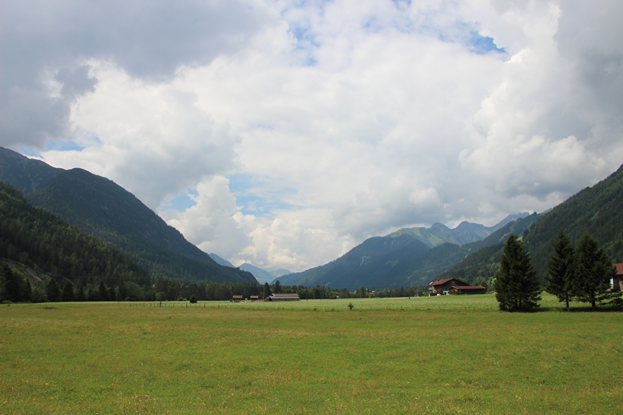 Blick talaufwärts auf Holzgau – und einen ersten Regenschauer ![]() 300 dpi JPEG |