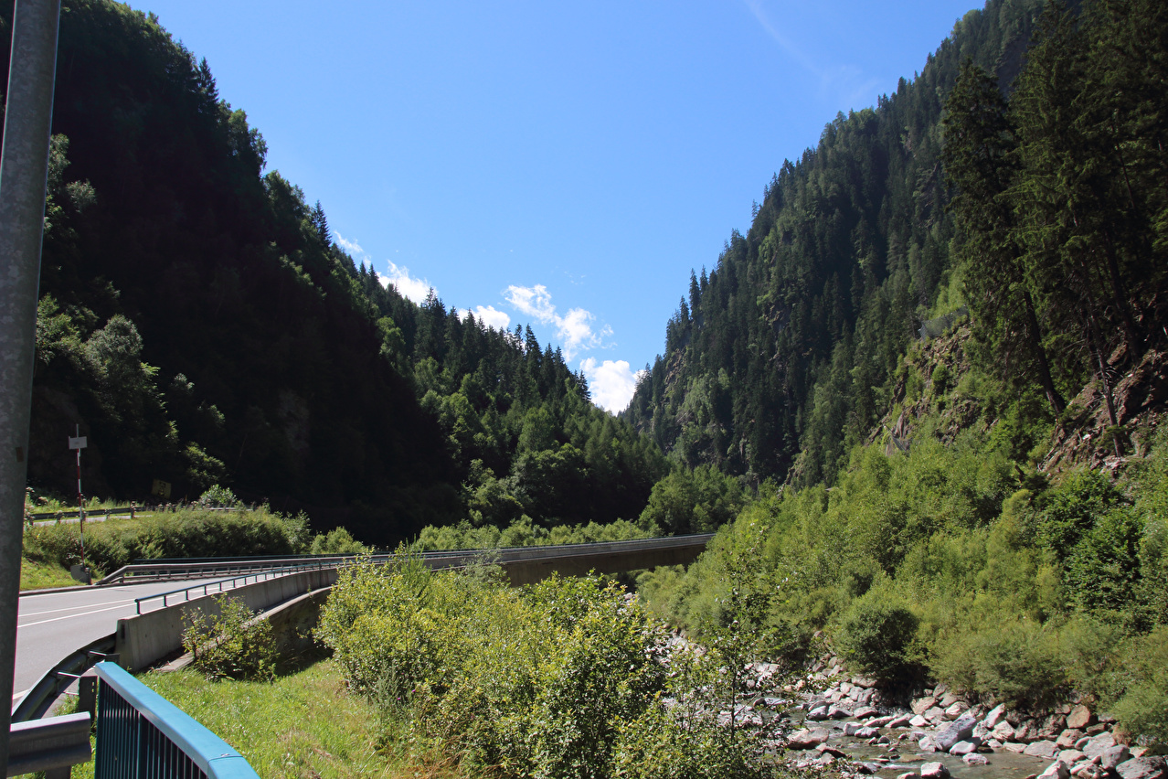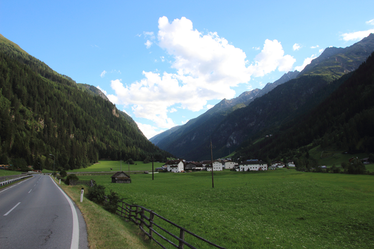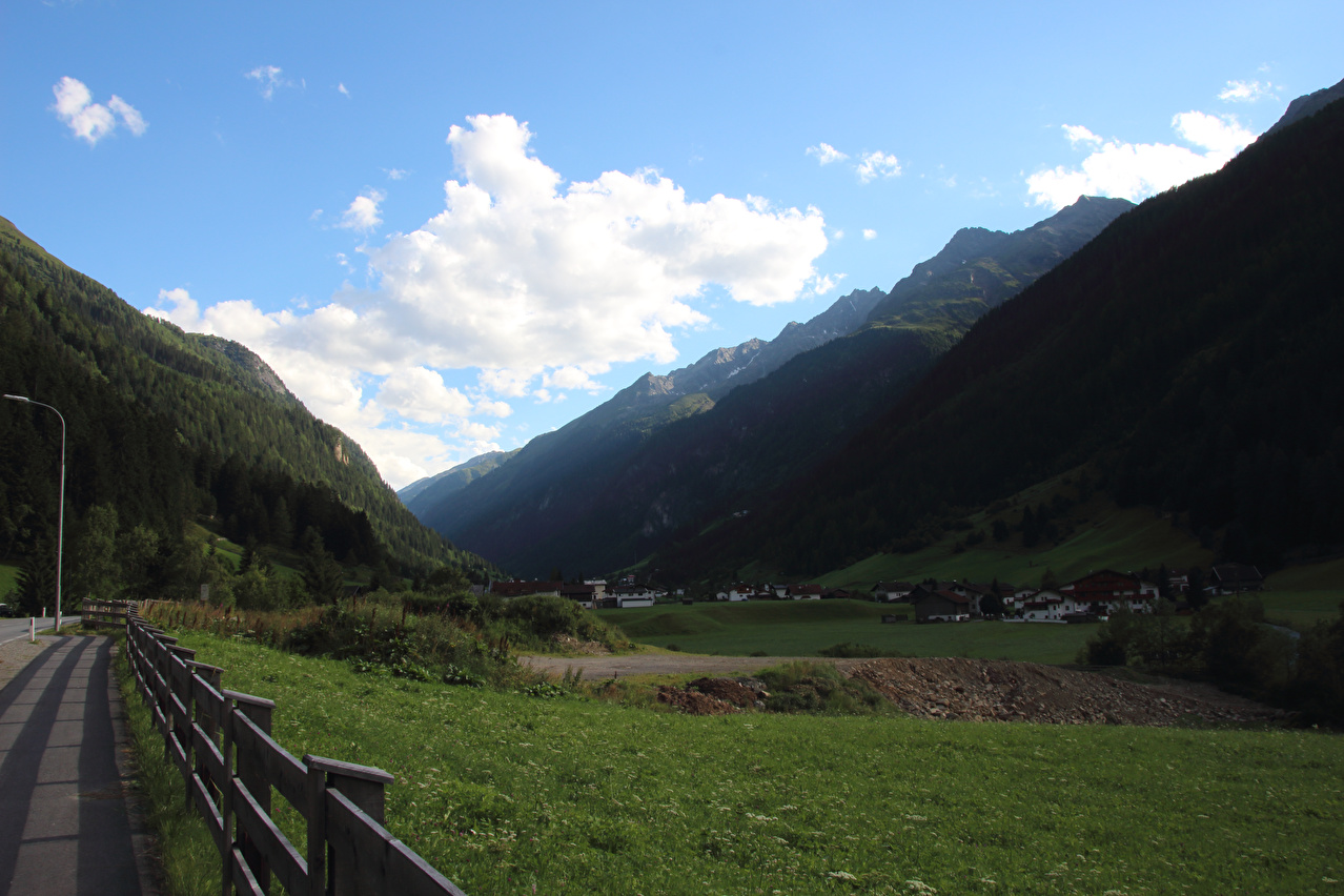 Beschreibung | Diese Etappe war eine typische "Überführungsetappe" und enthielt daher keinen Bergpass. Der Wechsel aus dem Paznauntal ins Kaunertal ergab ein Wannenprofil für diese Etappe. Ein solches Wannenprofil ist prinzipiell ungünstig, da ausgerechnet zur Mittagszeit und am frühen Nachmittag in tief gelegenen und entsprechend warmen Regionen gefahren wird. Und daran schließt sich dann die Bergauffahrt bis ins Etappenziel an. Von Lochau bis zum Abzweig der B188 von der B171 gab es eine inverse Streckenwiederholung im Rahmen dieser Tour. Bergauf war diese Strecke drei Tage zuvor gefahren worden. Im Stanzertal, vor allem im Oberinntal und auch im unteren Teil des Kaunertals herrschte drückende Hitze, womit der Nachteil des Wannenprofils dieser Etappe voll durchschlug. Bei diesem schwülheißen Wetter ließen die Bremsen auch nicht lange auf sich warten. Ab Landeck galt Stechbomberalarm. Der Inntalradweg von Landeck bis Prutz war kein Unbekannter. Der war bereits am 23.07.2013 gefahren worden. Für Radfahrer und Fußgänger ist im Kaunertal für den untersten Tunnnel eine mindestens fragwürdige Umgehung ausgewiesen. Diese Umgehung wird von mehreren Murstrichen gekreuzt, was bei Regen oder zur Zeit der Schneeschmelze entsprechend gefährlich ist. Der Schutt der letzten Muren war nicht oder zumindest nicht vollständig weggeräumt worden, sodass darüber jeweils geschoben werden musste. Nach einem kurzen Steilstück im Kaunertal verlief der Rest der Etappe vergleichsweise flach, womit wenigstens zum Ende der Etappe hin der Nachteil des Wannenprofils dieser Etappe nicht ganz so stark zum Tragen kam. Während des Abendessens setzte Regen ein und beendete die kurze Schönwetterphase. |