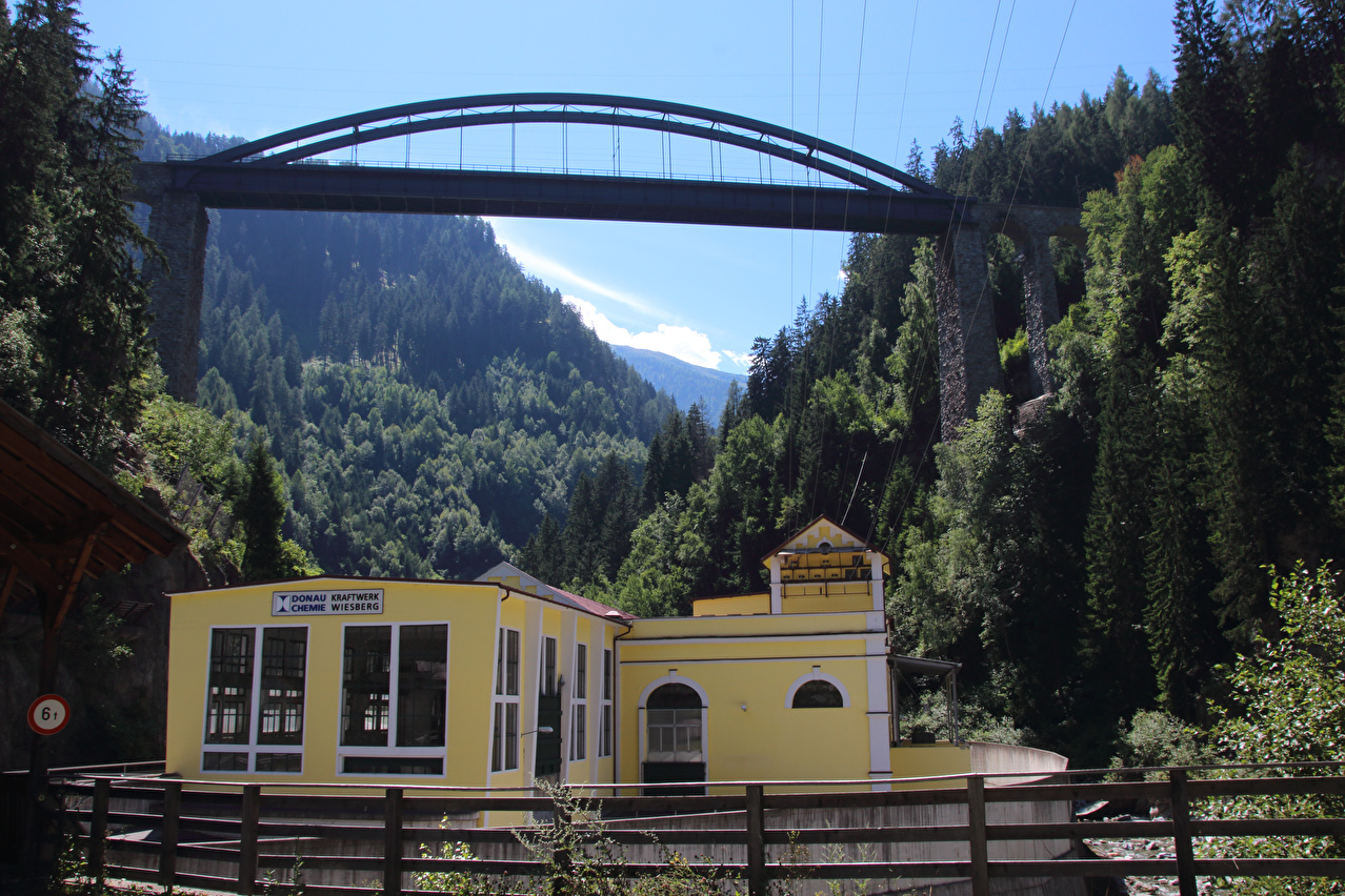 Wasserkraftwerk Wiesberg und Trisannabrücke am unteren Ende des Paznauntals, Blick ins Paznauntal ![]() 300 dpi JPEG |