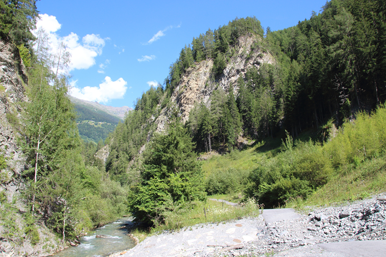 Blick flussaufwärts zu Bergen der Verwallgruppe … ![]() 300 dpi JPEG |