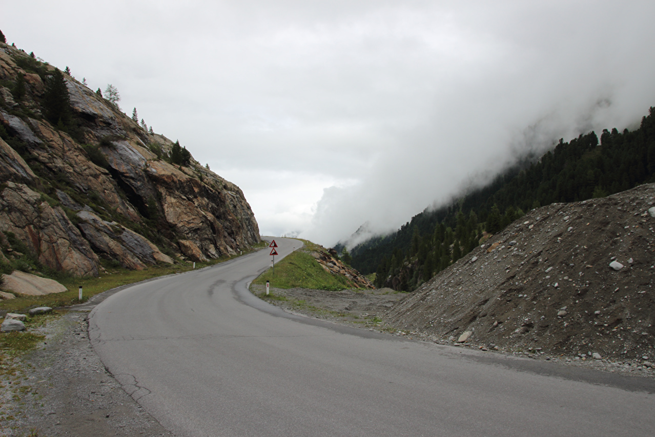 Beschreibung | Diese Etappe hätte zum oberen Ende der Kaunertaler Gletscherstraße auf 2749 m.ü.A. führen sollen, aber es sollte einfach nicht sein. Der Tag begann verregnet und somit verschob sich der Aufbruch von geplant 09:00 MESZ auf 11:30 MESZ, also noch gerade ausreichend um diese Etappe bei trockenem Wetter voraussichtlich vor Einbruch der Dunkelheit beenden zu können. Zunächst blieb es trocken, aber der Himmel blieb wolkenverhangen und die Sonne hatte keine Chance. Während der Pause an der Faggenbachbrücke fiel dann um 12:30 MESZ die Entscheidung zum Abbruch der Bergauffahrt und zur Umkehr nach Feichten. Selbst im Zenit waren keine nennenswerten Aufhellungen zu erkennen. Zudem blies ein eiskalter Wind aus dem Tal hinauf. Die Temperatur betrug auf 1920 m.ü.A. gerade mal +14 °C und vor allem lag die Wolkenunterkante bei etwa 2100…2200 m.ü.A.. Eine Fahrt auf nasser Straße bei Kälte und vor allem in den Wolken, also "im Nebel" auf einer kehrenreichen, unbekannten Bergstraße mit Stinkeverkehr erschien zu risikoreich. Ohne Bergpanorama wäre die Fahrt zudem wenig attraktiv gewesen. Auf dem extrem frustrierenden Rückweg wurde gleich im Gepatschhaus eine Fresspause eingelegt. In der weiteren Abfahrt setzte wieder zunächst leichter Regen ein, der aber immer stärker wurde. Die Regenjacke allein reichte bergab nicht mehr aus. An der Staumauer des Gepatsch-Stausees wurde daher für den Rest der Etappe "Vollschutz" angelegt. Die Wolkenunterkante war zu dem Zeitpunkt bereits auf unter 2000 m.ü.A. abgesunken. An der Staumauer hielten während des Anlegens der "Norddeutschen Trachtenkleidung" zwei Leute auf einem Motorrad an, die die Bergauffahrt wenn auch weiter oben ebenfalls wegen Nässe und Nebel abgebrochen hatten. Der Regen endete erst am Abend in Feichten. Dort im Hotel war in der Glotze neben den üblichen Programmen auch ein Lokalsender empfangbar, der immer wieder Webcam-Bilder vom nicht erreichten Bergziel, dem oberen Ende der Kaunertaler Gletscherstraße zeigte. Dort lag auch am Abend noch alles in Wolken. So endete der mit Abstand unerfreulichste Tag aller Alpentouren. ☹ Man weiß zwar, dass so etwas im Hochgebirge passieren kann, aber sch███e ist es trotzdem! |