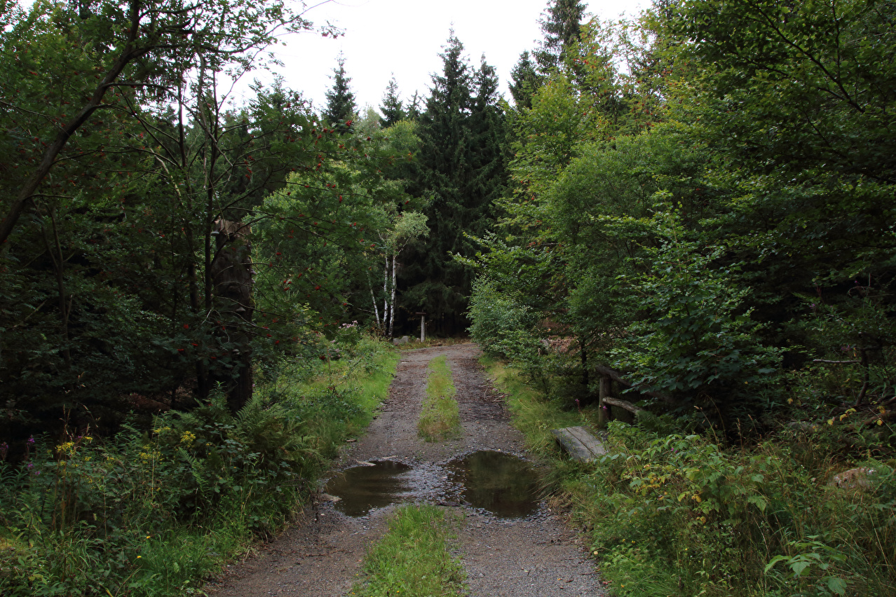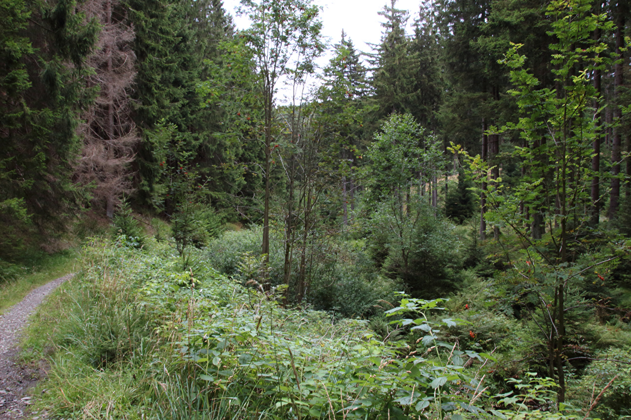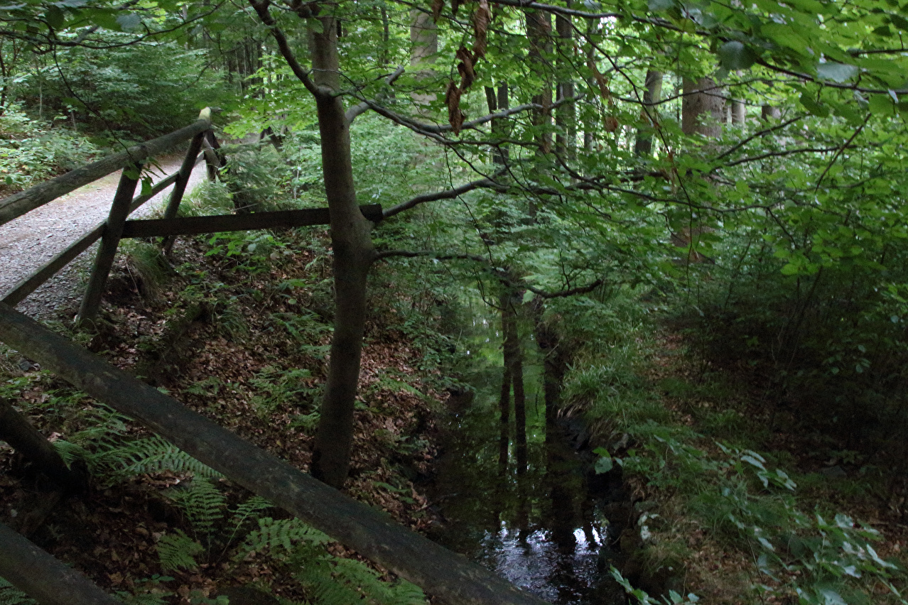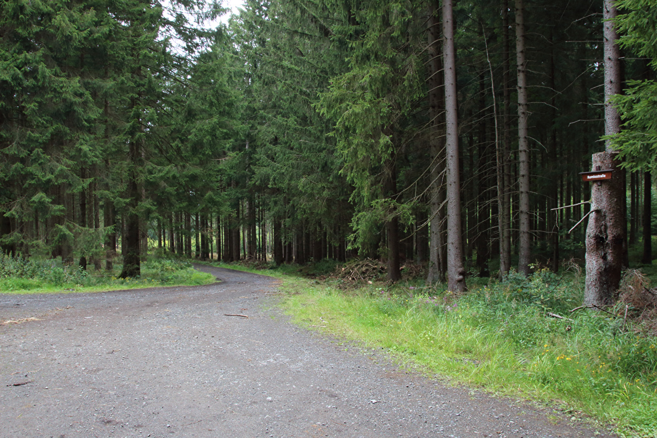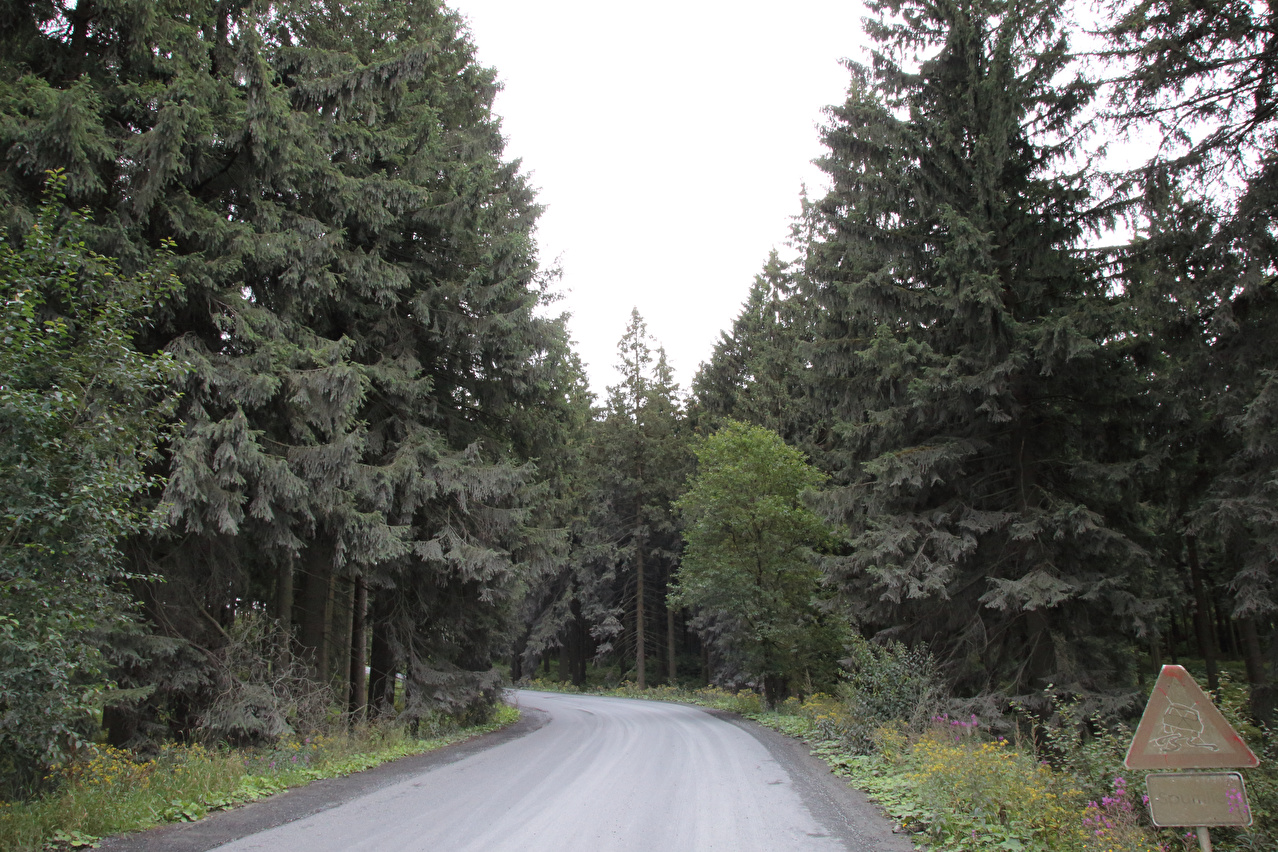 Beschreibung | Trotz der kühlen Witterung und des weitgehend bedeckten Himmels ließ sich eine Harztour nicht weiter hinaus schieben. Da mal eine in Teilen neue Route auf Waldwegen anstand, wurde mit dem geländegängigen Fahrrad gefahren. Die Romkestraße, die mehr oder weniger dem Verlauf der Großen Romke folgt, verdient den Namen "Straße" nicht wirklich, denn der Belag ist durchgehend nur wassergebunden. Nach eher sanftem Anstieg zu Beginn folgt ein extremes Steilstück mit durchgängig deutlich über 10 % und maximal 24 % Steigung bis zur ersten Kehre. Danach folgt ein fast flaches Stück zum Durchatmen und Beine ausschütteln. Weiter oben sind die Steigungen unkritisch. Mit zunehmender Höhe wurde es immer kälter, und auf dem Huneberg mischten sich erste Regentropfen unter den Wind. Daher wurde dort die Abfahrt angetreten. Der Waldweg entlang der Radau verengte sich bis zum Singletrail, bevor er wieder eine Straße erreichte. Diese zu verlassen, um weiter der Radau zu folgen, erwies sich als Fehler, den der Weg enthielt mehrere Schiebepassagen. Die Schiebestrecke über die Holzbrücke, die über den Graben führt, der Wasser dem Radau-Wasserfall zuführt, ist noch hinnehmbar, zumal hier kein Platz für einen Weg parallel zum Graben vorhanden ist. Nach dieser Holzbrücke ist der am steilen Hang verlaufende Weg jedoch stellenweise derart verblockt und mit frei liegenden Baumwurzeln durchzogen, dass eine Fahrt zu gefährlich ist, da ein Sturz auch den Hang runter führen kann. |