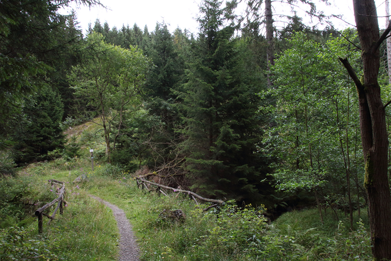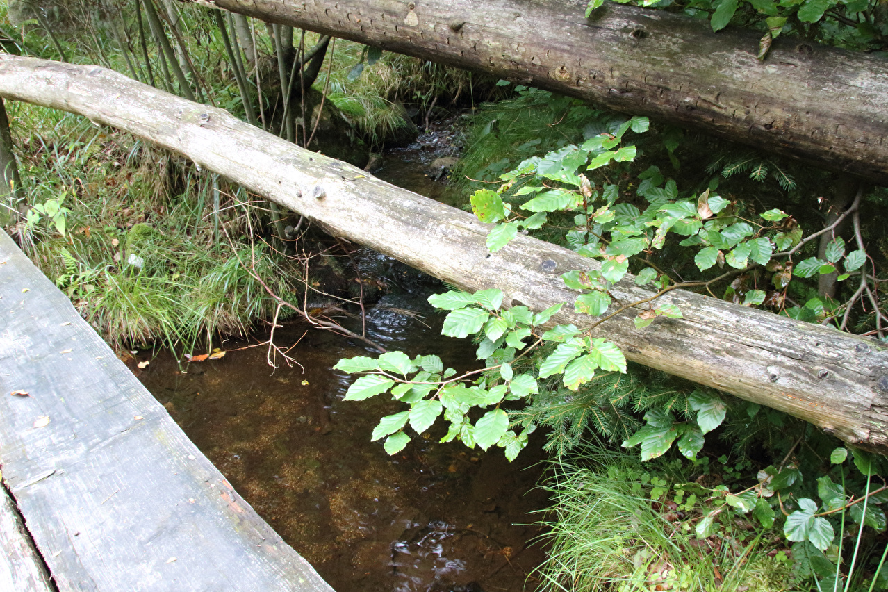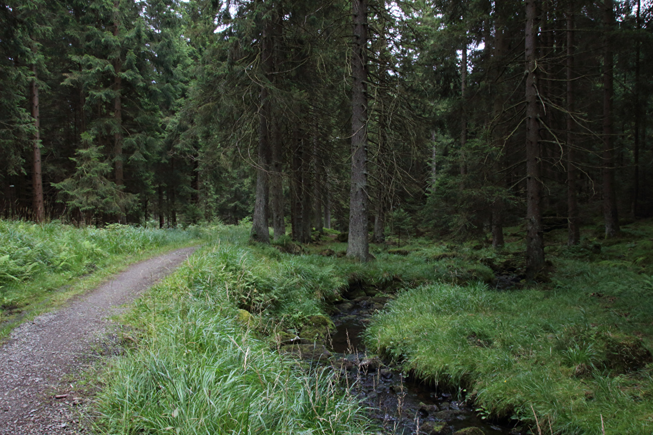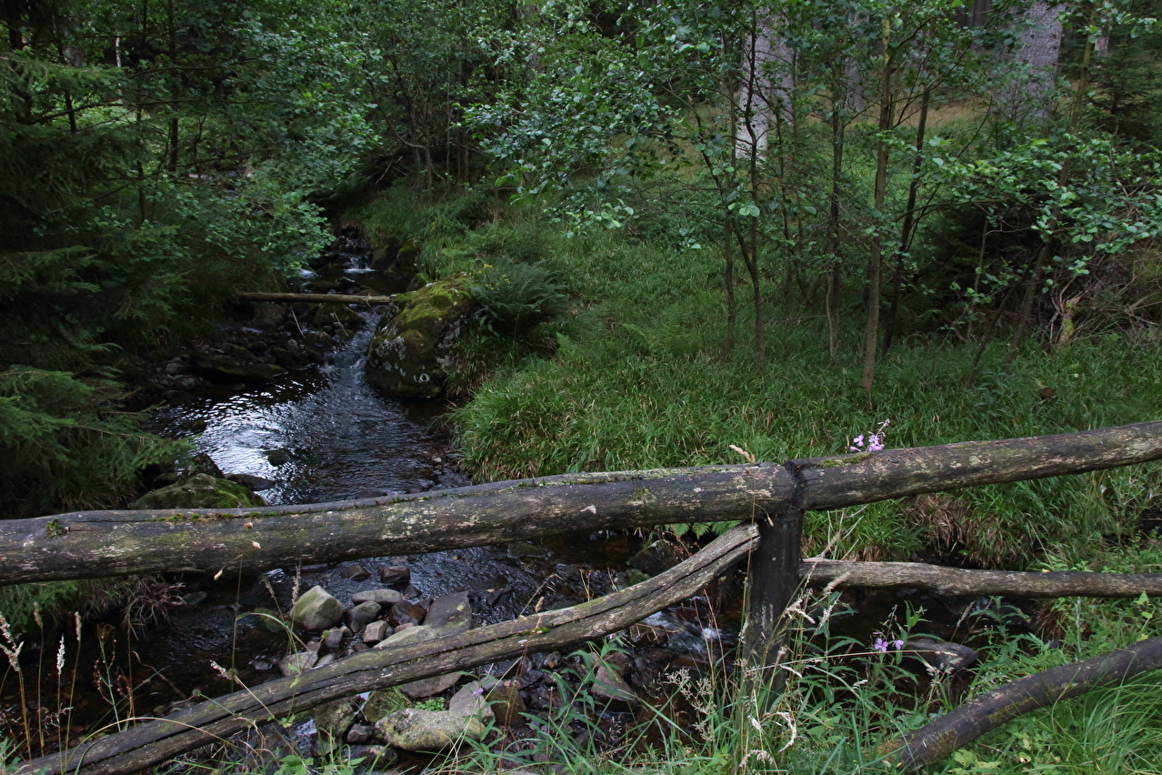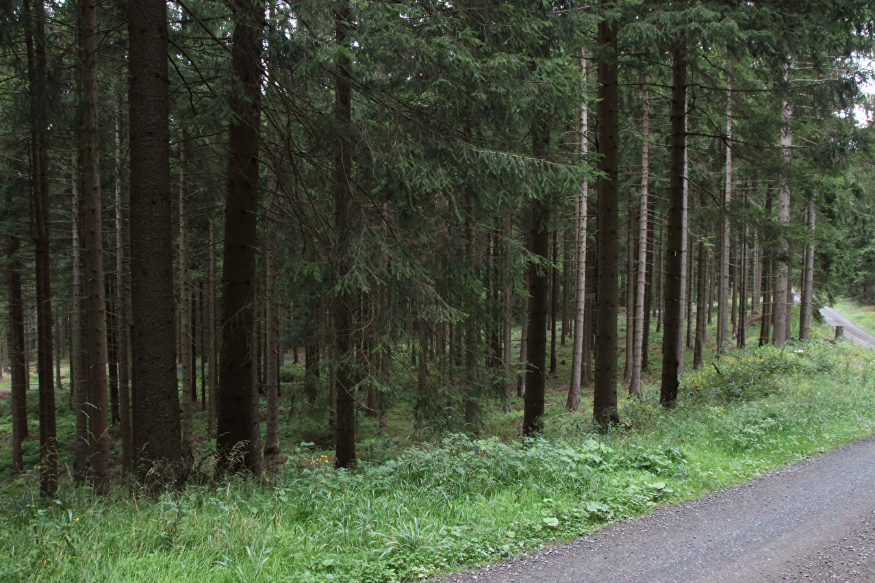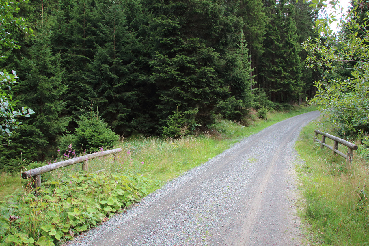 Beschreibung | Trotz der kühlen Witterung und des weitgehend bedeckten Himmels ließ sich eine Harztour nicht weiter hinaus schieben. Da mal eine in Teilen neue Route auf Waldwegen anstand, wurde mit dem geländegängigen Fahrrad gefahren. Die Romkestraße, die mehr oder weniger dem Verlauf der Großen Romke folgt, verdient den Namen "Straße" nicht wirklich, denn der Belag ist durchgehend nur wassergebunden. Nach eher sanftem Anstieg zu Beginn folgt ein extremes Steilstück mit durchgängig deutlich über 10 % und maximal 24 % Steigung bis zur ersten Kehre. Danach folgt ein fast flaches Stück zum Durchatmen und Beine ausschütteln. Weiter oben sind die Steigungen unkritisch. Mit zunehmender Höhe wurde es immer kälter, und auf dem Huneberg mischten sich erste Regentropfen unter den Wind. Daher wurde dort die Abfahrt angetreten. Der Waldweg entlang der Radau verengte sich bis zum Singletrail, bevor er wieder eine Straße erreichte. Diese zu verlassen, um weiter der Radau zu folgen, erwies sich als Fehler, den der Weg enthielt mehrere Schiebepassagen. Die Schiebestrecke über die Holzbrücke, die über den Graben führt, der Wasser dem Radau-Wasserfall zuführt, ist noch hinnehmbar, zumal hier kein Platz für einen Weg parallel zum Graben vorhanden ist. Nach dieser Holzbrücke ist der am steilen Hang verlaufende Weg jedoch stellenweise derart verblockt und mit frei liegenden Baumwurzeln durchzogen, dass eine Fahrt zu gefährlich ist, da ein Sturz auch den Hang runter führen kann. |
