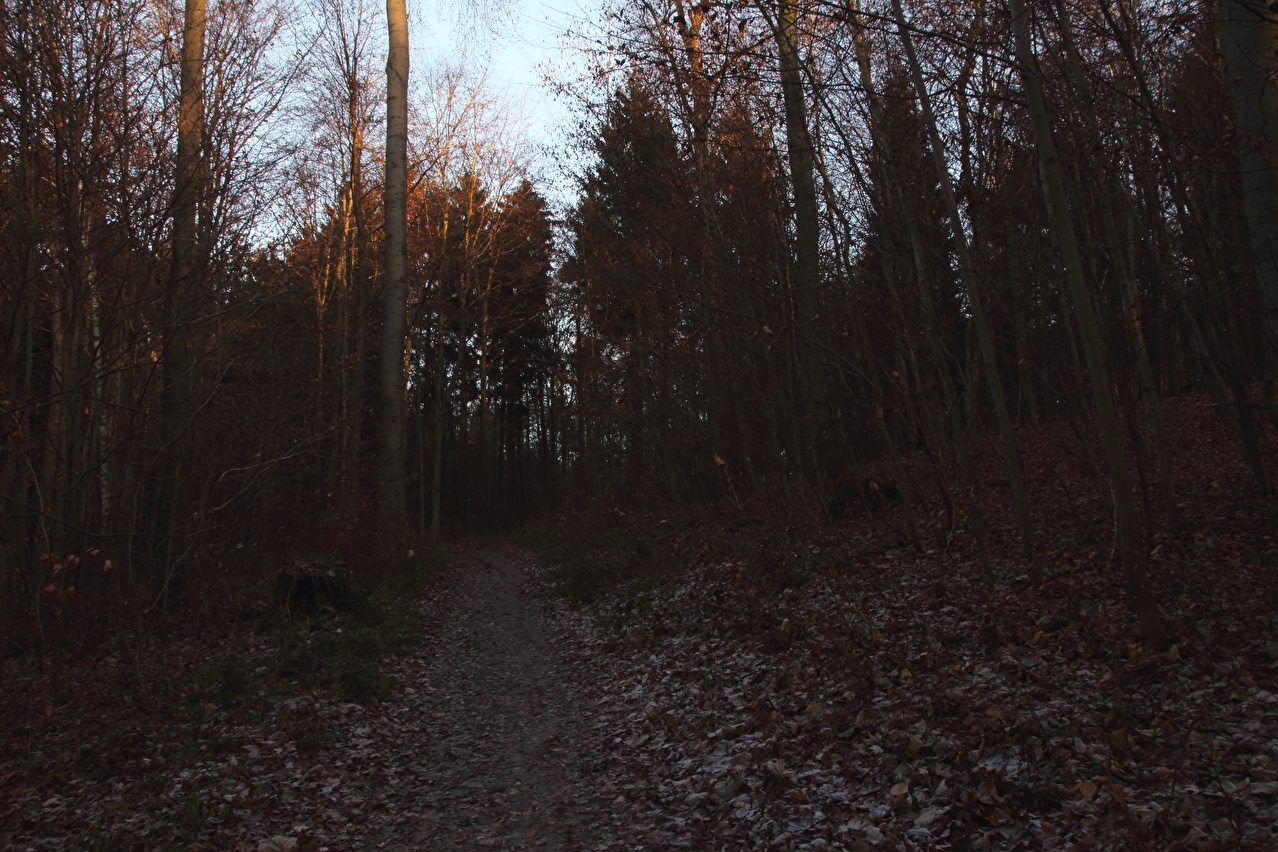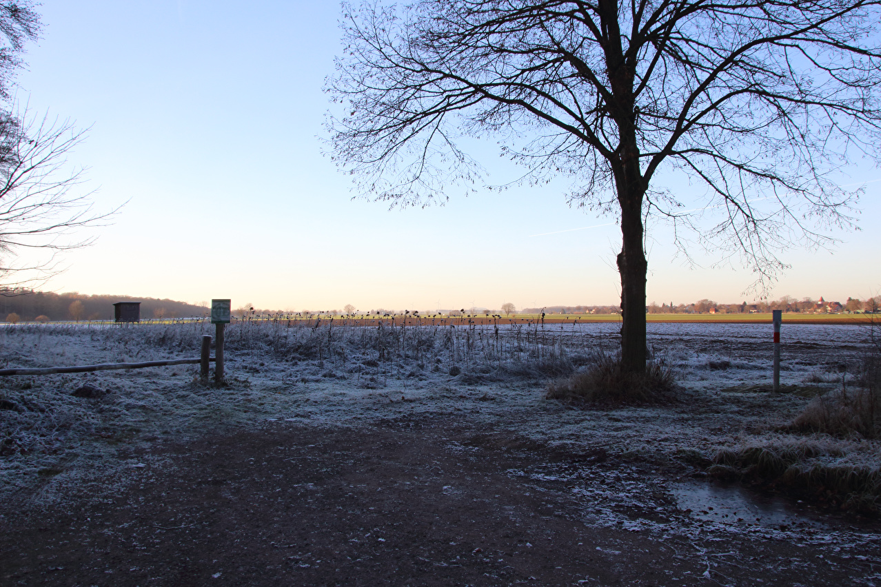 Beschreibung | Die Nacht war kalt, und auch am Tag wurde es nicht viel wärmer, weshalb auch diese Tour kurz ausfiel. In ganztägig schattigen Lagen hielt sich der Frost am Boden und teilweise auch an den Pflanzen. Die Fernsicht war nicht so gut wie zwei Tage zuvor. Von Northen aus sollte die Tour eigentlich nur am Westhang des Benther Berges entlang führen. Aber dann war da dieser Weg, der mit seinem trockenen Belag verlockend bergauf führte. So bot die Tour wenigstens noch einige Minuten Bergfahrspaß. |