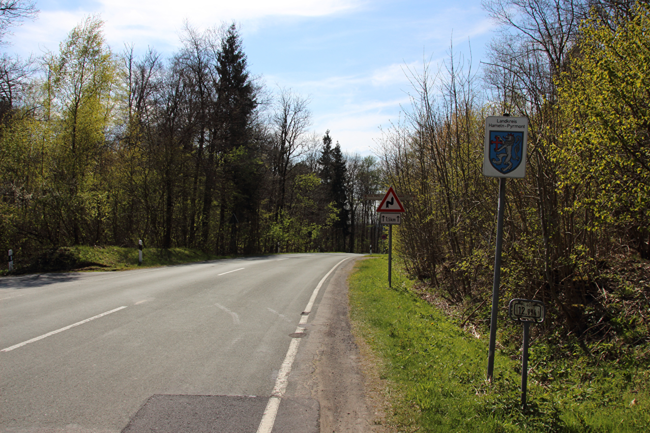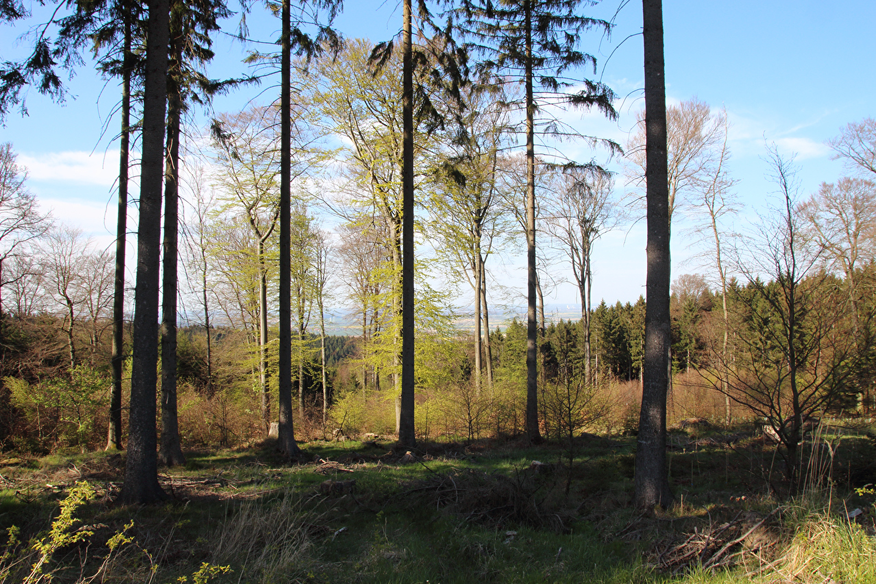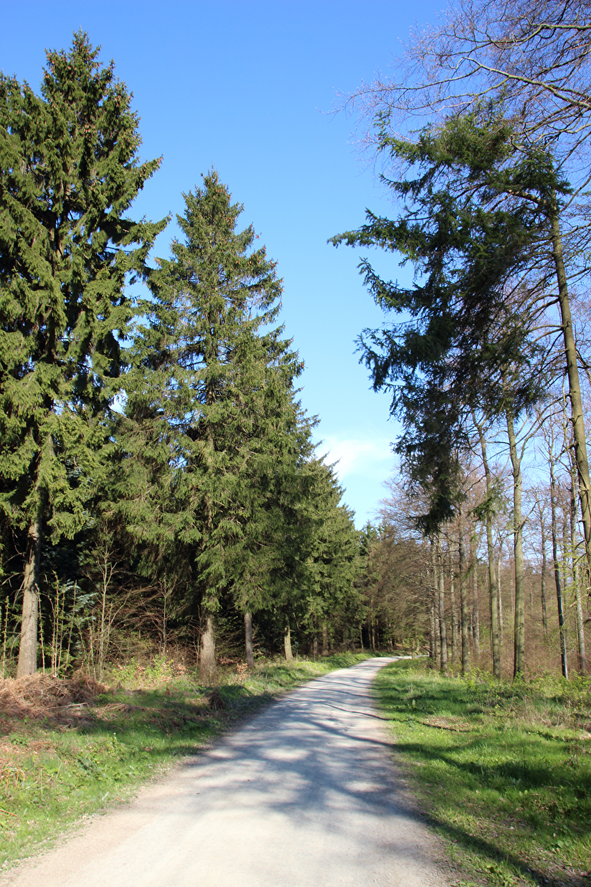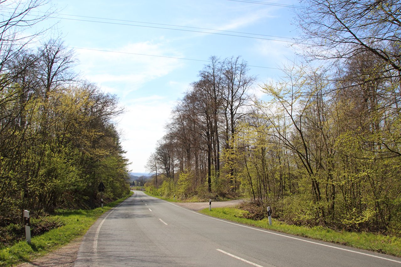 Beschreibung | Diese Tour war die letzte in diesem Jahr, die noch weite Blicke durch lichte Buchenwälder bot, denn die Buchen zeigten bereits ersten Laubaustrieb. Die Sonne drückte an dem Tag schon recht kräftig, dafür bot sich eine gute Fernsicht. Gleich dreimal "Holz" quer über den Weg auf einer Strecke von noch nicht einmal 2 km war schon reichlich viel für Zufall, zumal die Teile auch nicht sehr zufällig liegend aussahen. Da hat sich womöglich jemand einen ganz schlechten Scherz erlaubt, zumal an zwei Stellen der Weg eine starke Neigung aufweist und eine dieser beiden Stellen auch noch unübersichtlich ist. Während sich der erste Asthaufen umfahren ließ, waren die beiden anderen nicht umfahrbaren Hindernisse mit ein paar Handgriffen schnell beiseite geräumt. Auch diese leichtgängige Wegräumbarkeit sprach gegen Zufall. |