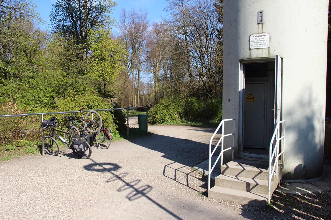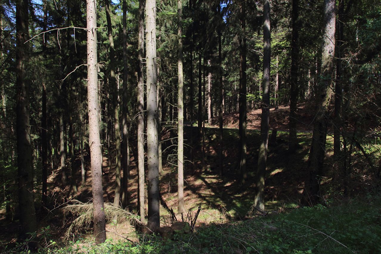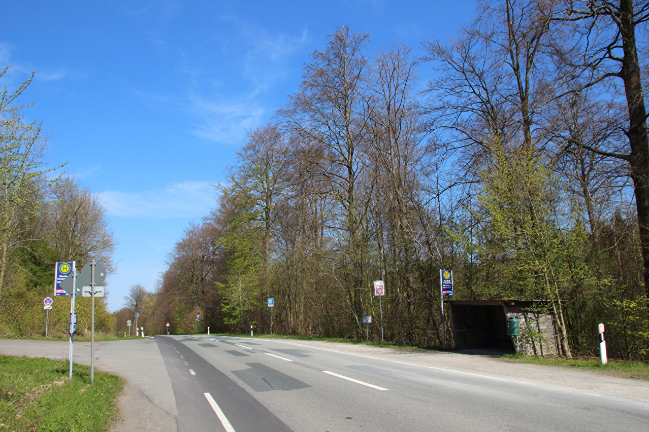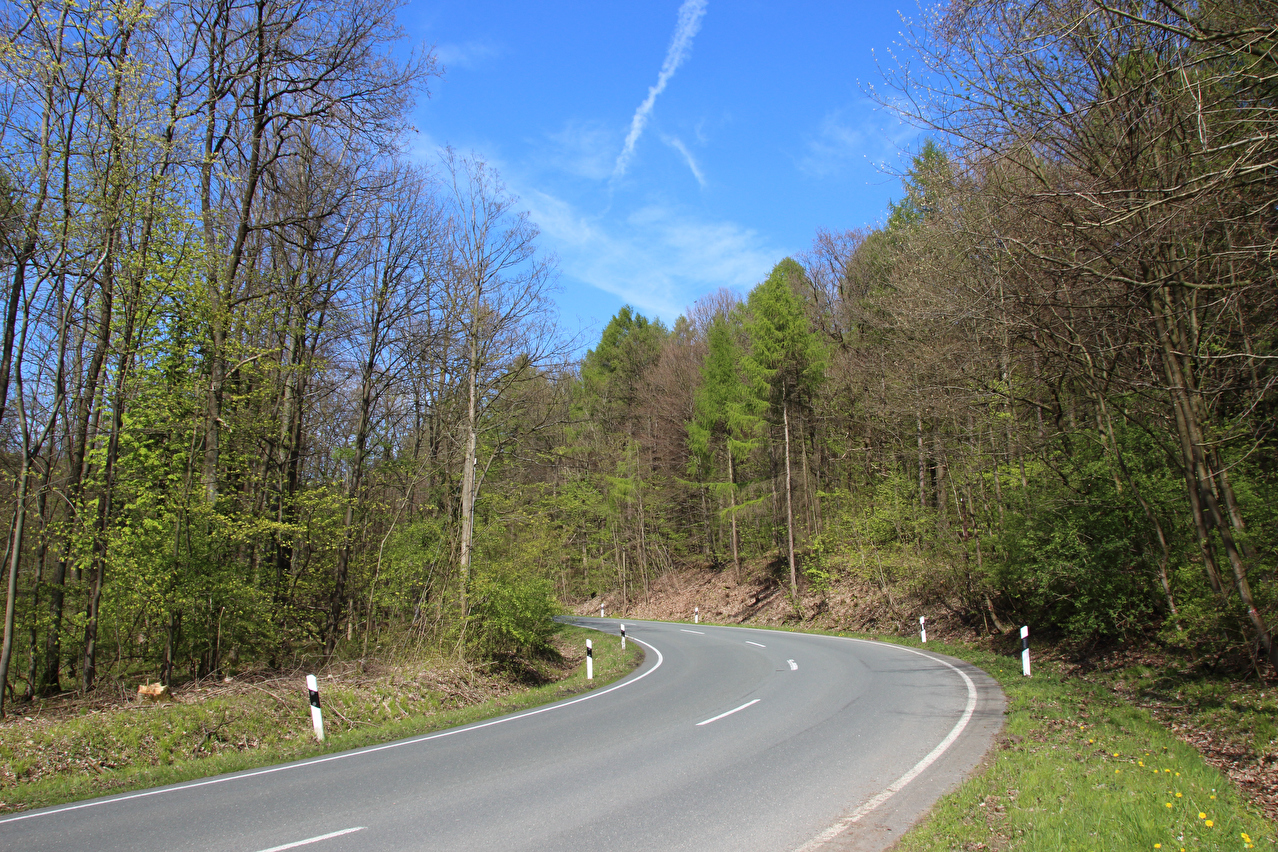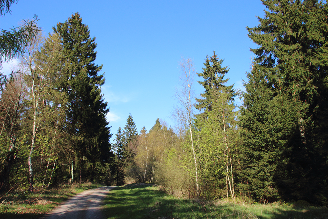 Beschreibung | Diese Tour war die letzte in diesem Jahr, die noch weite Blicke durch lichte Buchenwälder bot, denn die Buchen zeigten bereits ersten Laubaustrieb. Die Sonne drückte an dem Tag schon recht kräftig, dafür bot sich eine gute Fernsicht. Gleich dreimal "Holz" quer über den Weg auf einer Strecke von noch nicht einmal 2 km war schon reichlich viel für Zufall, zumal die Teile auch nicht sehr zufällig liegend aussahen. Da hat sich womöglich jemand einen ganz schlechten Scherz erlaubt, zumal an zwei Stellen der Weg eine starke Neigung aufweist und eine dieser beiden Stellen auch noch unübersichtlich ist. Während sich der erste Asthaufen umfahren ließ, waren die beiden anderen nicht umfahrbaren Hindernisse mit ein paar Handgriffen schnell beiseite geräumt. Auch diese leichtgängige Wegräumbarkeit sprach gegen Zufall. |