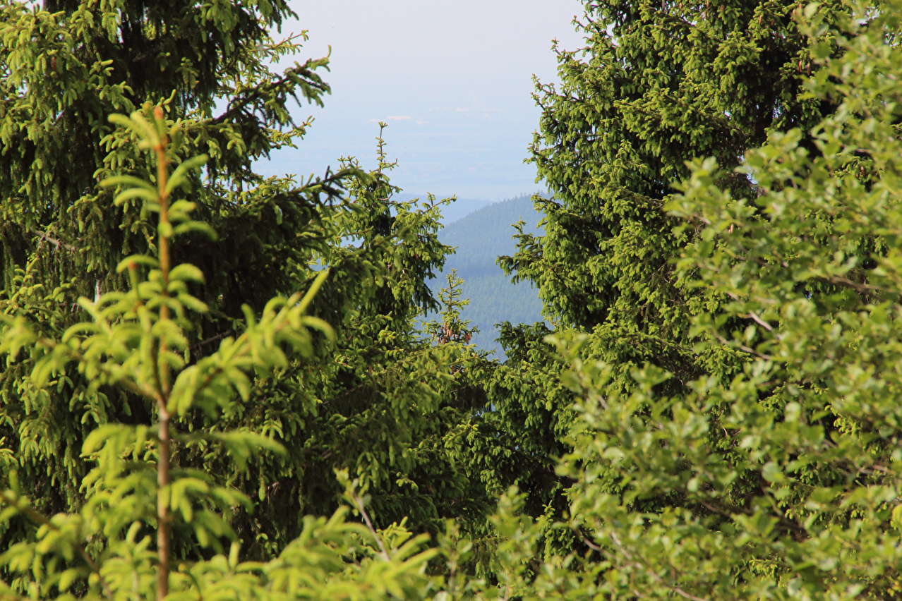 letzter Sattelpunkt der Tour, Torfhaus, Blick über das Nationalpark-Denkmal zum Brocken ![]() 300 dpi JPEG |