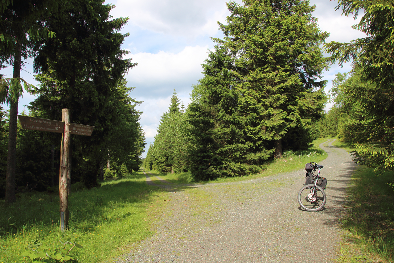 Beschreibung | Dieses Mal wurde wieder eine Route ohne Schiebepassagen auf den Bruchberg gewählt, womit natürlich an der Altenauer Hütte auf gerade mal 880 m ü.NHN Schluss mit dem Höhengewinn war. Die Fahrt nach Torfhaus erfolgte zunächst über den zuvor noch nicht gefahrenen Oberen Bruchbergweg, bevor die L504 erreicht wurde. Im Tagesverlauf zog es sich immer weiter zu, aber es blieb trocken. |