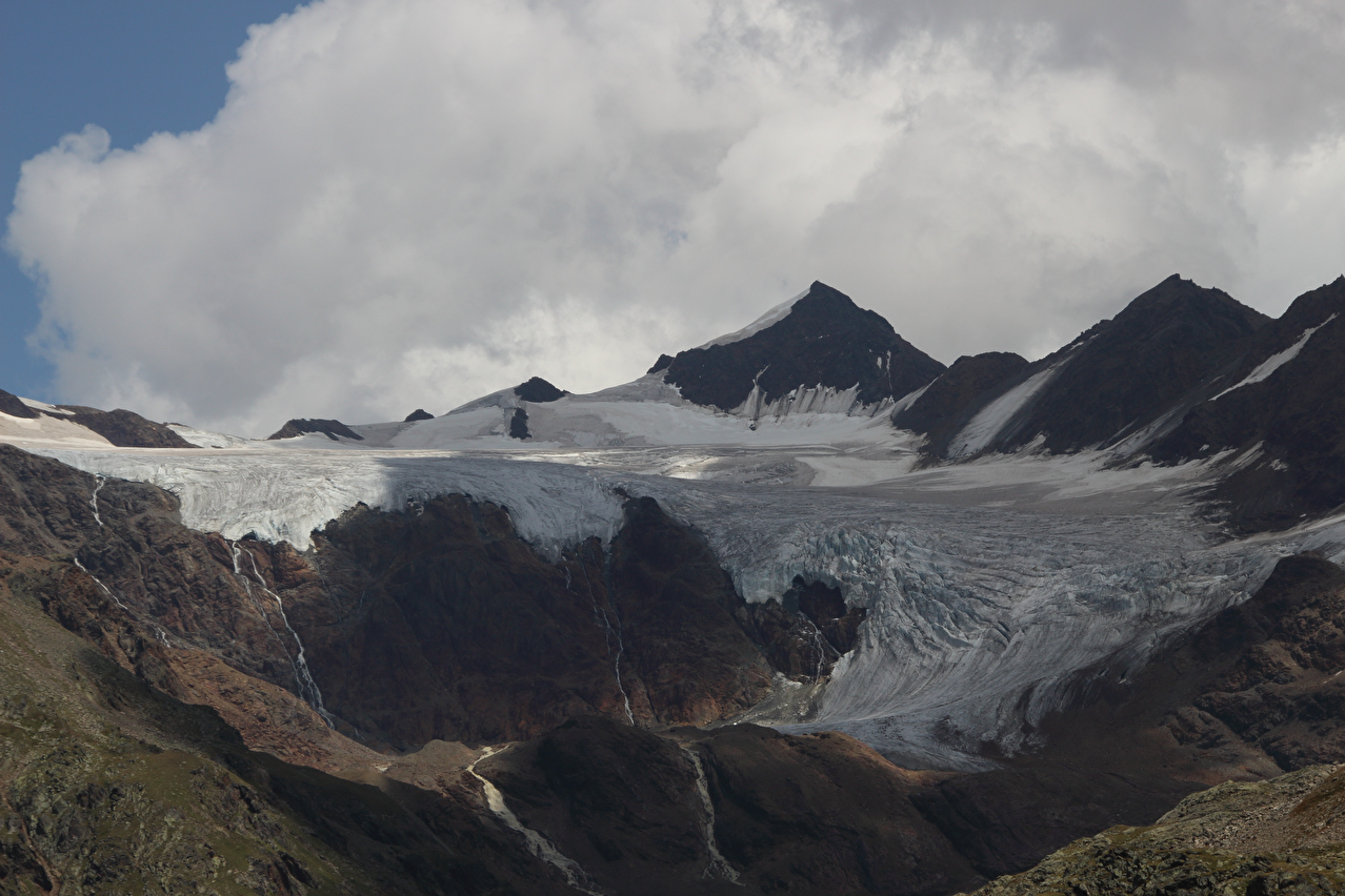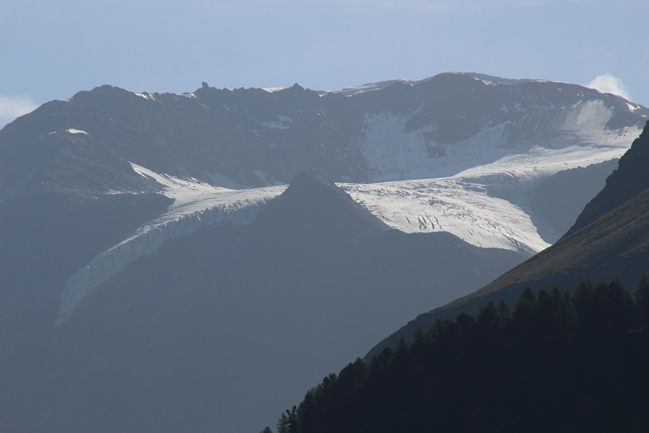 Blick zum Ghiacciaio di Dosegù, dahinter die Punta San Matteo ![]() 300 dpi JPEG |