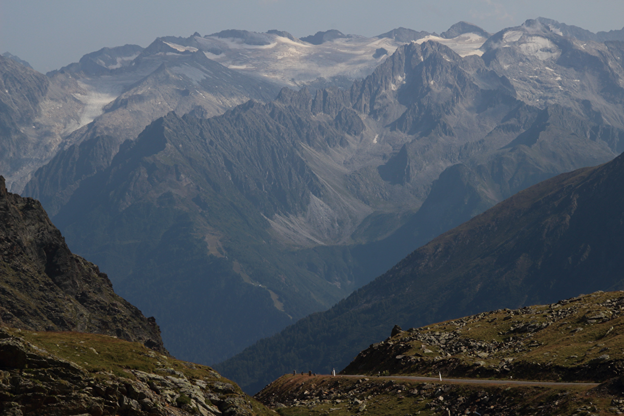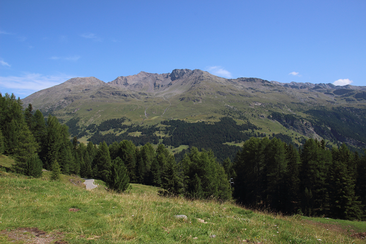 Blick ins Val di Forni und auf den Monte Pasquale und dahinter v. l. n. r.: Monte Cevedale und Monte Rosole ![]() 300 dpi JPEG |