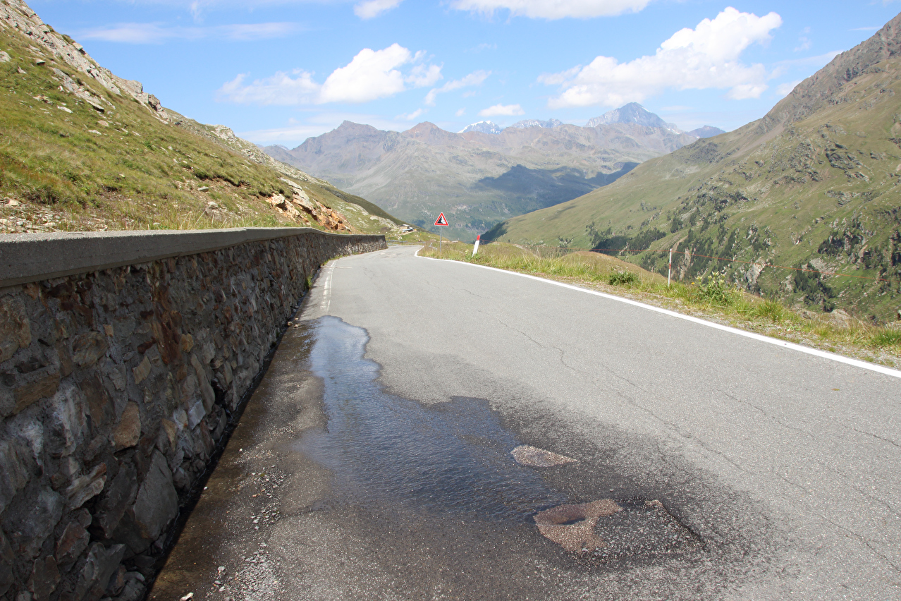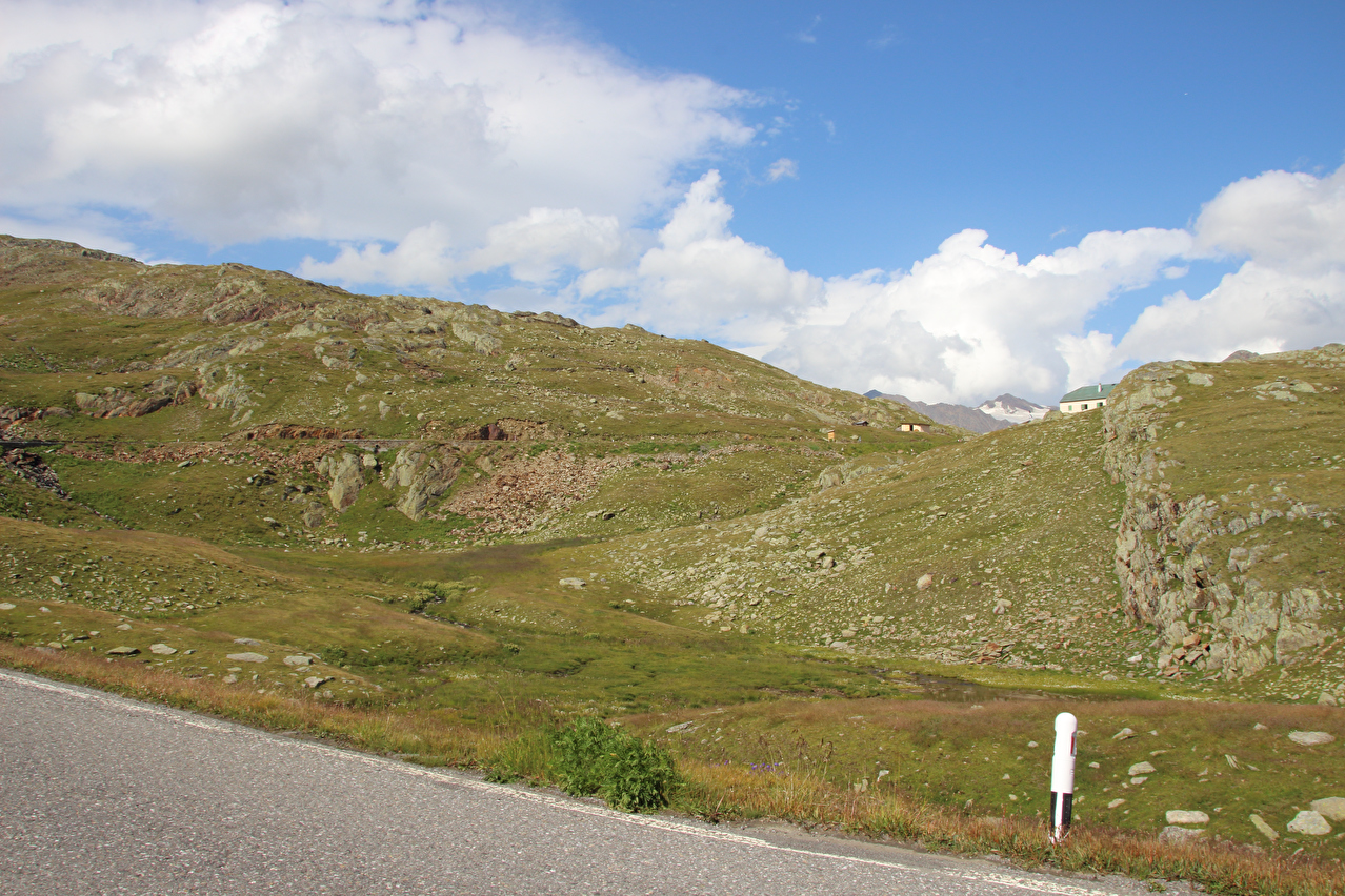 1734 m s.l.m. hatte offenbar für die Anpassang daran gereicht. An diesem Montag war auch erfreulich wenig Stinkeverkehr zu verzeichnen. Auf der Passhöhe ließ sich erahnen, dass