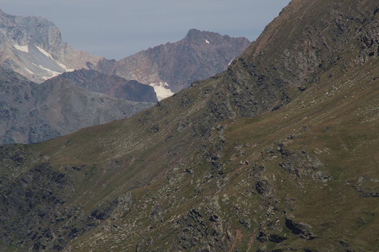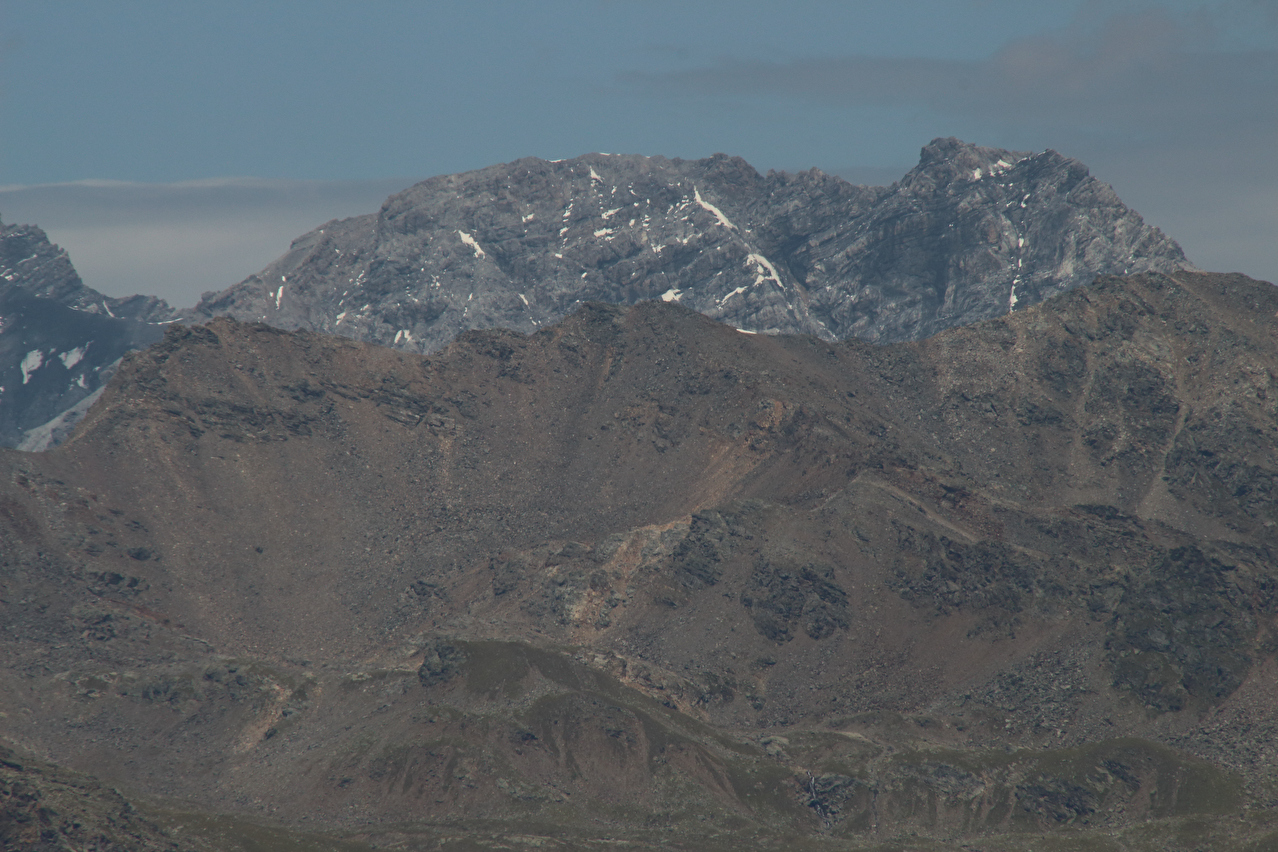 weiter oben, Blick über das Val di Forni auf den Monte Pasquale und dahinter den Monte Cevedale ![]() 300 dpi JPEG |