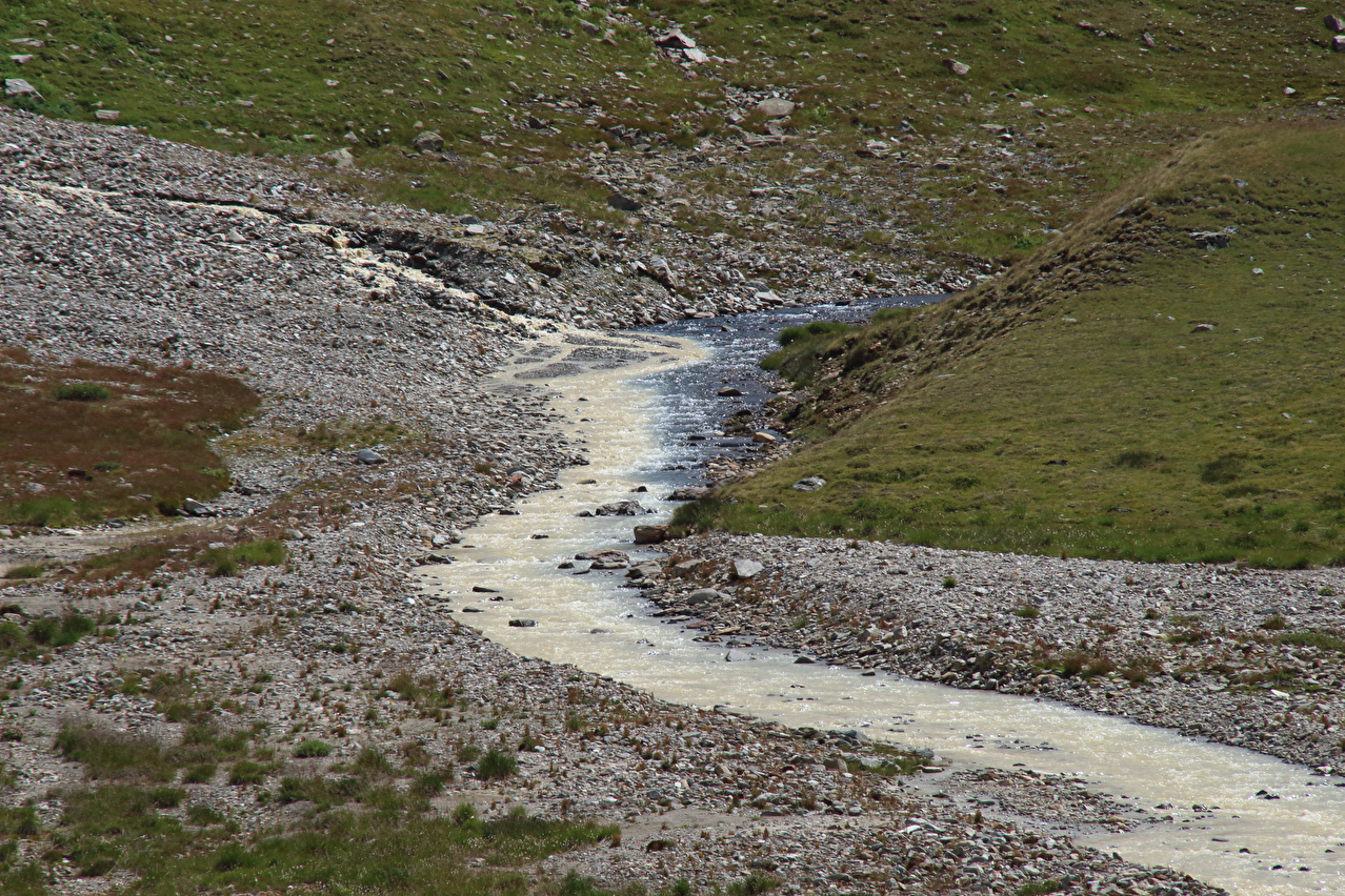 Zoom auf den Zusammenfluss von Schmelzwasserbach und Torrente Gavia ![]() 300 dpi JPEG |