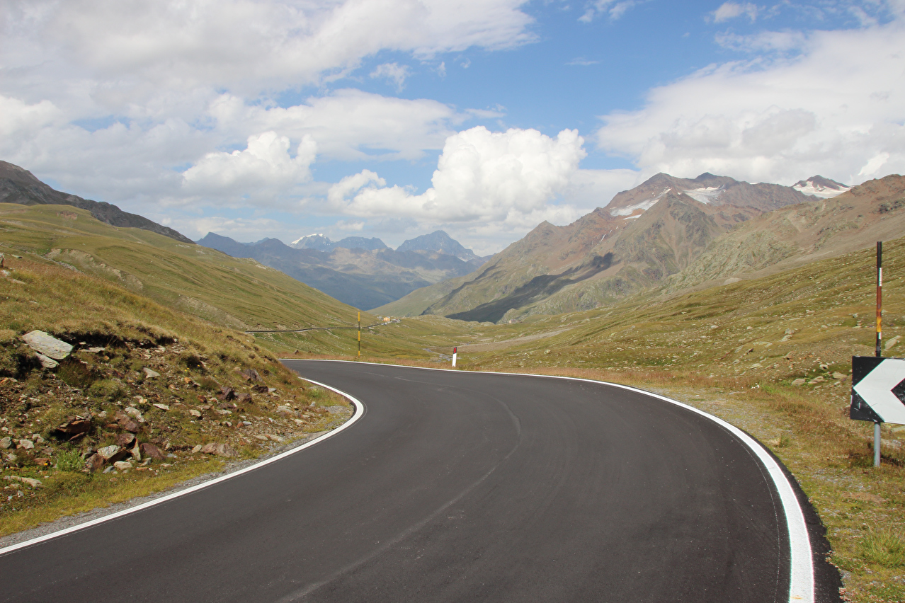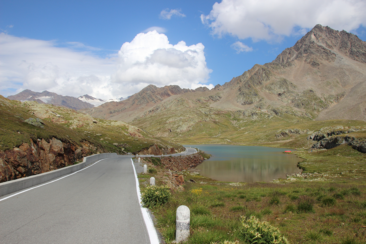 den Alpen leider weit verbreitet. Der Passo di Gavia ist insgesamt ein sehr schöner Pass für die Überquerung mit dem Fahrrad. Von Bormio aus auf der Nordrampe verteilen sich 1401 Höhenmeter bergauf auf 25,3 km Strecke. Von Ponte di Legno aus auf der Südrampe verteilen sich 1360 Höhenmeter bergauf auf 18,5 km Strecke. Verlorene Höhenmeter bergauf respektive Gegensteigungen bergab sind auf beiden Rampen kein Thema. Steilstücke mit über 10 % gibt es auf beiden Rampen nur wenige und auf der Straße gibt es nahezu keinen Durchgangsverkehr. Fernreisende wählen meist andere Routen und auch Einheimische nutzen den Pass kaum im Alltag. Der Pass ist allerdings nichts für ganz ängstliche Gemüter. Die Straße ist streckenweise sehr schmal, der Asphalt ist teilweise in schlechtem Zustand und Sicherungen gegen den Abgrund fehlen an vielen Stellen. Leitplanken gibt es nur an besonders kritischen Stellen, aber die bieten Zweiradfahrern eh nur bedingt Schutz. Wegen der langen Abfahrten in beide Richtungen sind dauerhaft leistungsfähige Bremsen am Fahrrad Pflicht. Auf der Südrampe ist Beleuchtung ebenfalls Pflicht, da ein ca. 800 m langer Tunnel durchfahren werden muss und weiter unten die Fahrt teilweise durch Wald führt. Für sportlich orientierte Fahrradfahrer spielt die Fahrtrichtung nur eine untergeordnete Rolle. Für alle anderen Fahrradfahrer bietet die Fahrt in Nord-Süd-Richtung die Möglichkeit, die Bergauffahrt auf der Nordrampe mit einer Übernachtung in Santa Caterina Valfurva auf zwei Tage (1. Tag: 517 Höhenmeter bergauf auf 12,2 km Strecke; 2. Tag: 887 Höhenmeter bergauf auf 13,1 km Strecke) aufzuteilen. Eine vergleichbare Möglichkeit fehlt auf der Südrampe. |