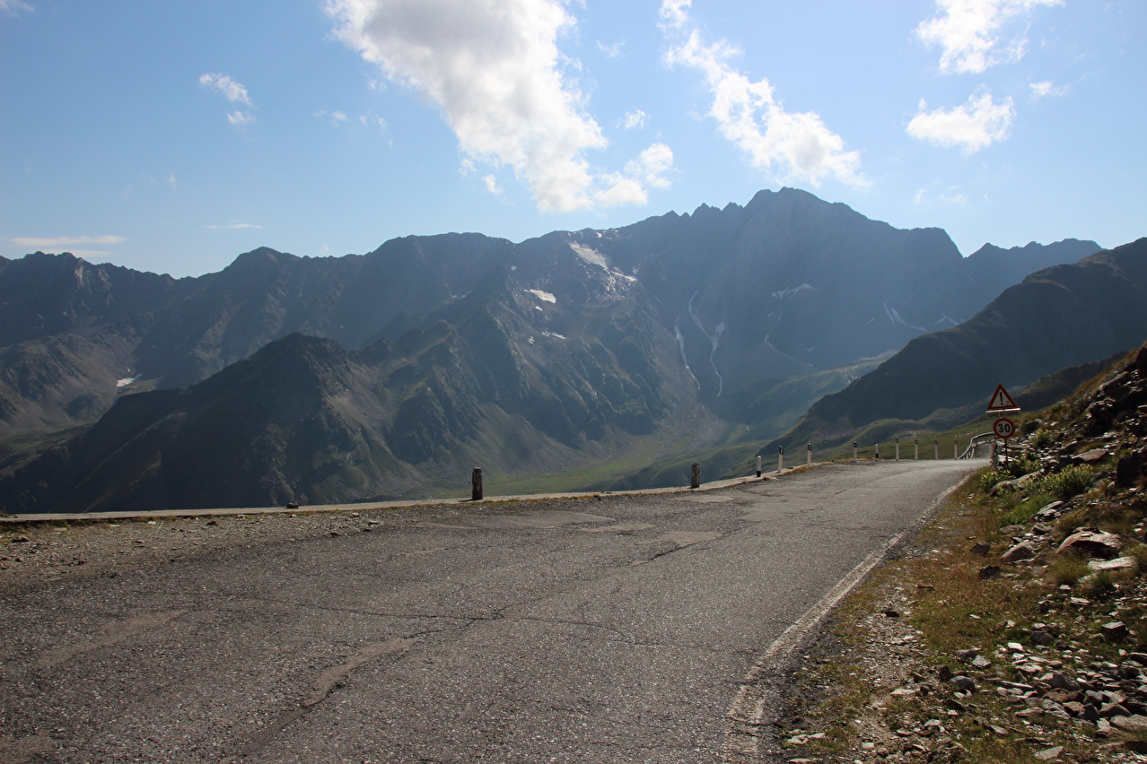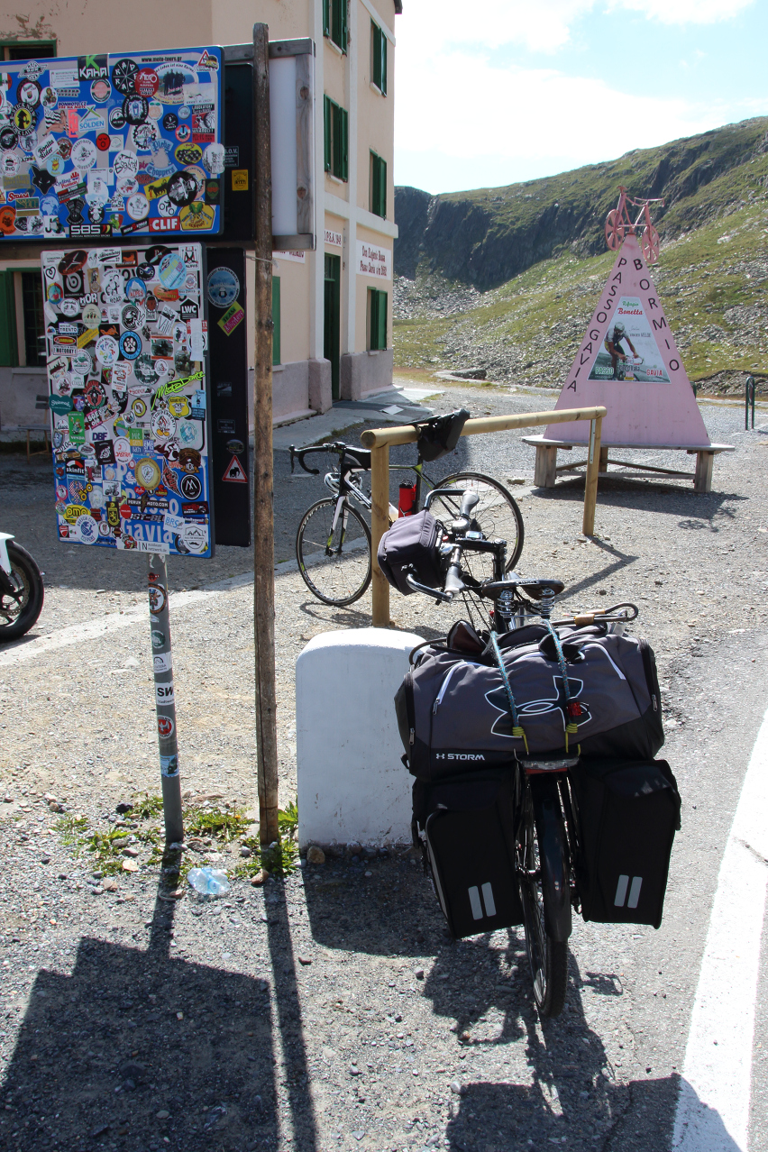 abzweigte und es für einen Umweg etwas spät war. Ärgerlich an diesem Tag waren lediglich das bis zur Unleserlichkeit mit Aufklebern zugeklebte Passhöhenschild und der unerwartet große
