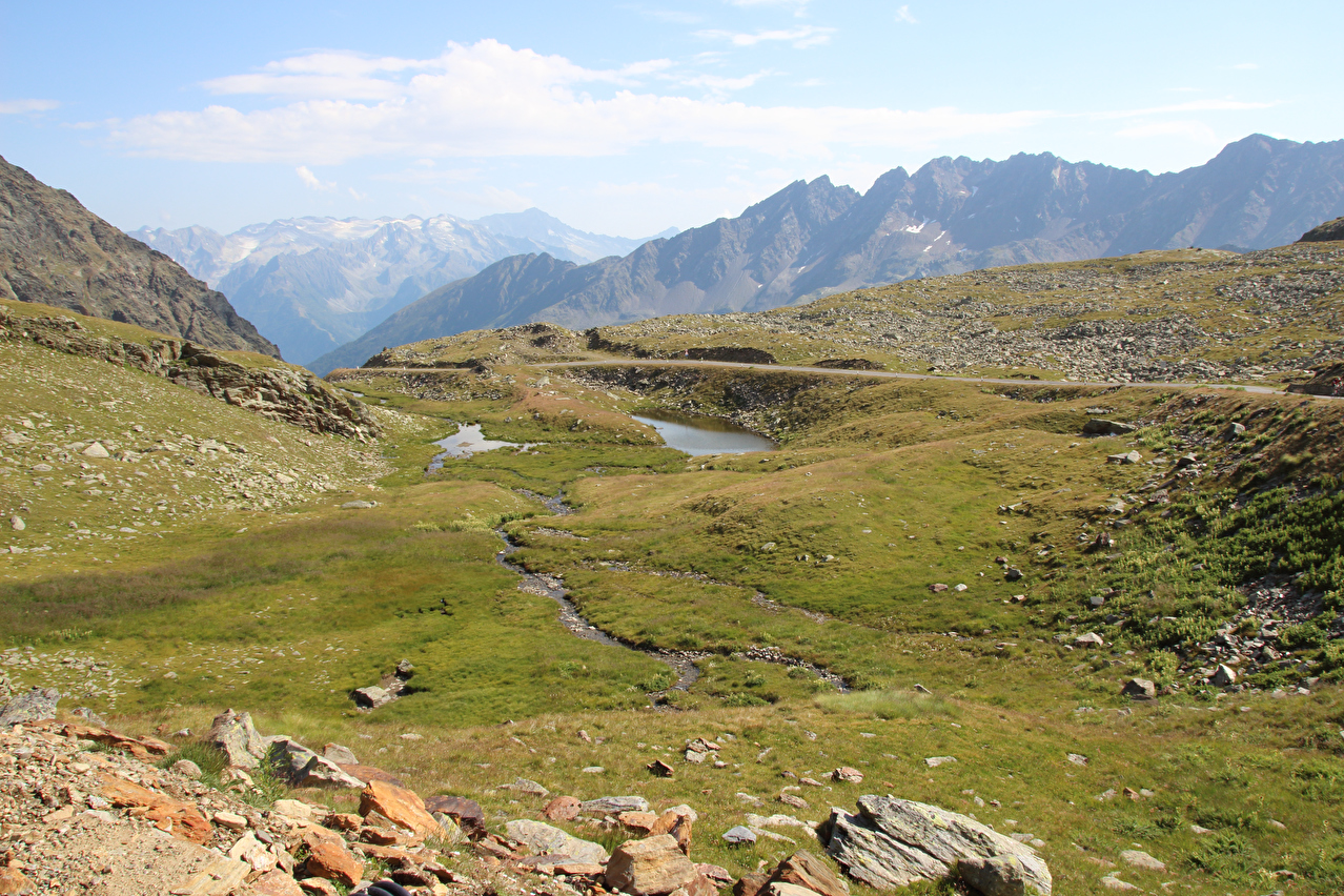der Rest der Tour, der nach der Abfahrt vom Passo di Gavia durchweg deutlich unterhalb von 2000 m s.l.m. verlaufen sollte, in großer Hitze verlaufen würde. Oben war es in