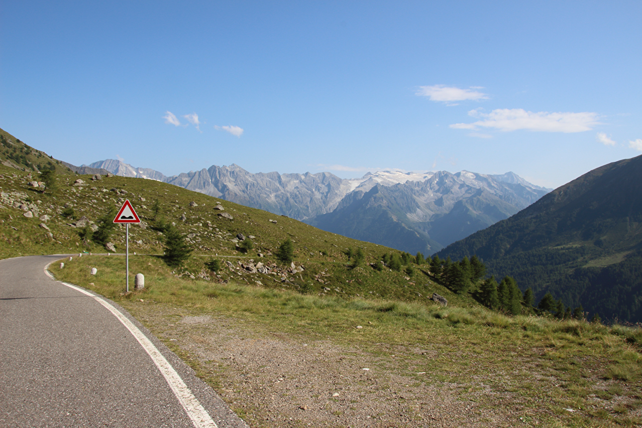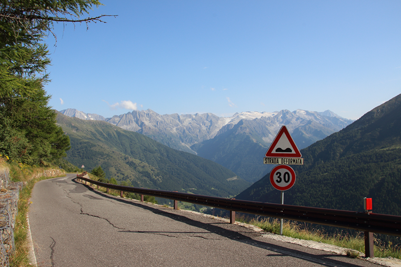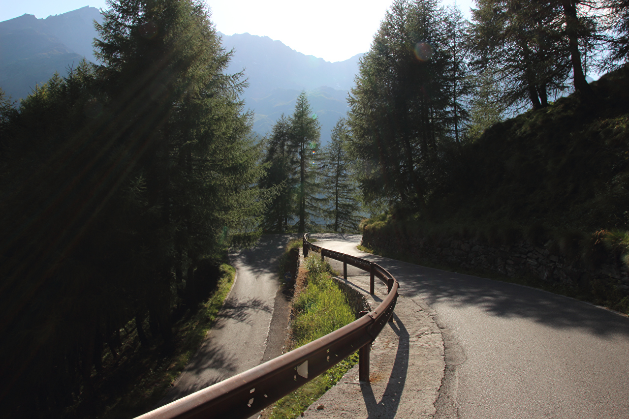erschien nicht sinnvoll, da nur bestimmte Rücklichter in die vorhandene Aufnahme passen. In der Abfahrt nach Ponte di Legno nahm dann unterhalb der montanen Baumgrenze die Hitze