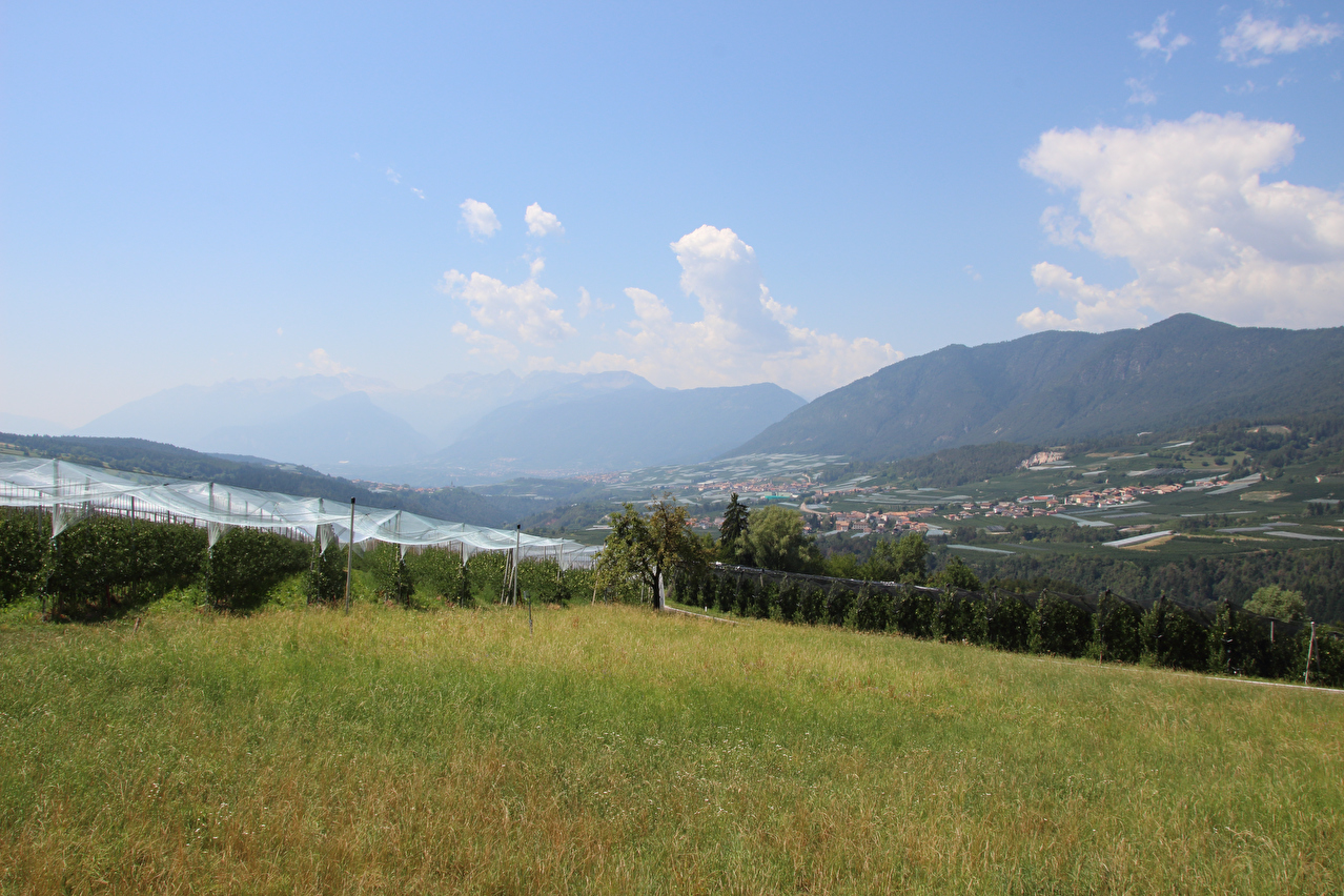 Ende der Etappe in Rentsch, Blick über Bozen zum Mendelkamm ![]() 300 dpi JPEG |