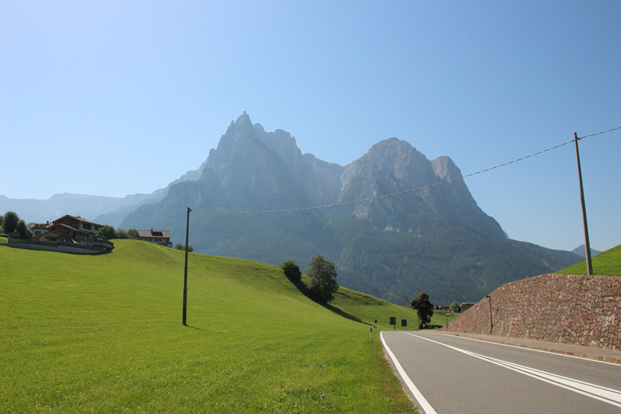 Beschreibung | Nachdem im bisherigen Tourverlauf die gesamte geplante Strecke trotz der ersten beiden verregneten Tage und der ab dem vierten Tag zunehmenden Hitze gefahren worden war, forderte die anhaltende extreme Hitze an diesem Tag doch noch ein "Opfer". Auf die Fahrt zur Seiser Alm wurde verzichtet, womit von der geplanten Etappe nurmehr ein trauriger Rest übrig blieb. ☹ Hauptgrund für diese Entscheidung war die Hitze. Die Temperatur erreichte in Seis am Schlern rasch über +30 °C im Schatten, und die Seiseralmstraße, auf der 742 Höhenmeter bergauf mit einer durchschnittlichen Steigung von 8,2 % zu überwinden sind, liegt überwiegend in der Sonne, die an diesem Tag ungestört vom nahezu wolkenlosen Himmel schien. Nach bereits einer Woche Fahrt, die abgesehen von den drei über 2000 Meter hoch gelegenen Pässen in der Brüllhitze verlief, war die Motivation an einem Tiefpunkt angelangt. Begünstigt wurde die Entscheidung durch den letzten Speichenriss am Vortag. Bei dessen Reparatur konnte der Schlag aus der Felge nicht mehr vollständig entfernt werden, was neben bereits mehreren Speichenrissen in diesem Jahr ein weiterer Hinweis darauf ist, dass die Felge hinüber ist und daher durch eine neue zu ersetzen ist. Dazu kam noch, dass keine Notwendigkeit für die Fahrt auf die Seiser Alm bestand, da diese eh als "Fahrstuhlfahrt", also rauf und auf dem selben Weg wieder runter, erfolgt wäre. Zudem zeigt die mitgeführte 1:70000-Fahrradkarte, die zum Zeitpunkt der Tourplanung noch nicht vorlag, dass die Seiser Alm auch vom Grödnertal aus mit dem Fahrrad erreichbar ist, womit die Möglichkeit besteht, die Seiser Alm im Rahmen einer zukünftigen Tour wie einen Bergpass, also in einer Richtung rauf und in einer anderen Richtung runter, zu fahren. |