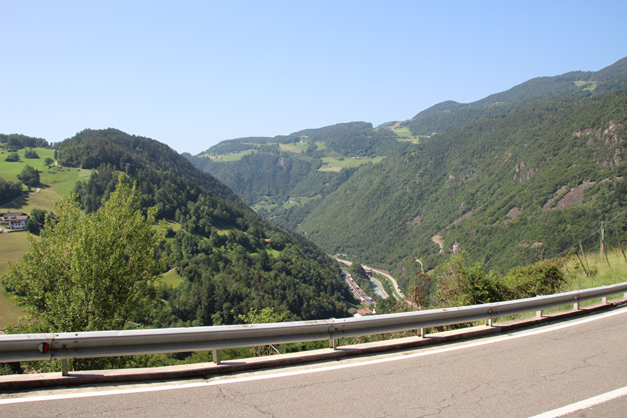 Abfahrt ins Eisacktal, Blick auf v. l. n. r.: Heinrichsberg und Saubacher Kofel ![]() 300 dpi JPEG |