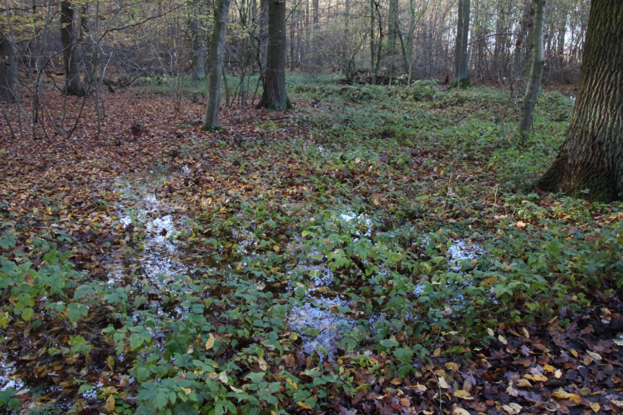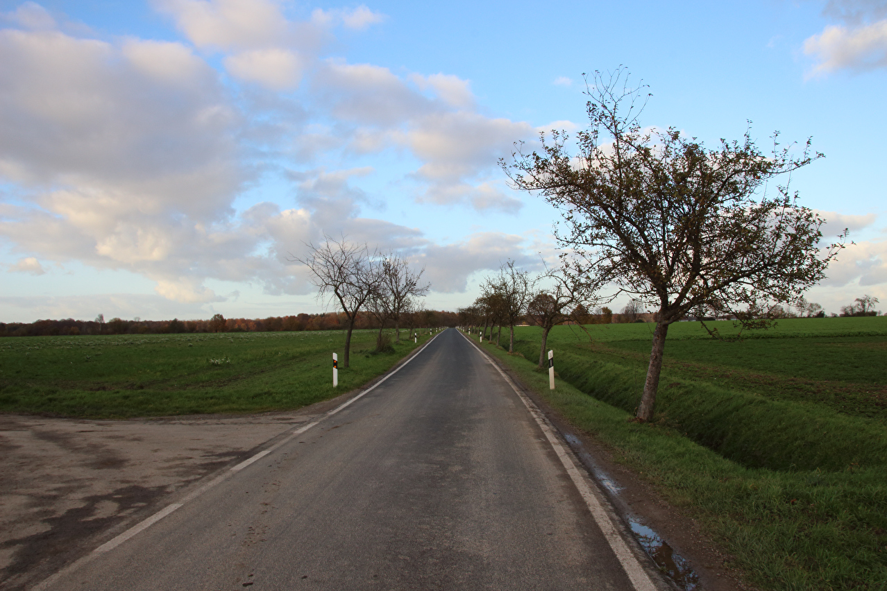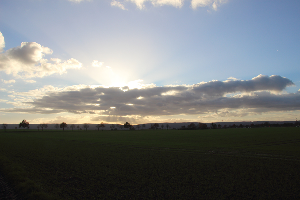 Beschreibung | Nach mehreren verregneten Wochenenden bot dieser Tag nochmal die Gelegenheit zu einer kurzen Runde. Für eine größere Tour war es zu kalt und auch zu unbeständig. Zudem waren die nicht befestigten Wege sehr matschig. Da es noch keine Nachtfröste gegeben hatte, hing noch relativ viel Laub an den Bäumen, während sich die Sträucher ihrer Blätter schon mehrheitlich entledigt hatten. Außerhalb der Wälder zeigte sich die Landschaft als öde Agrarwüste. Obwohl es vor Ort sehr klar war, reichte die Fernsicht an diesem Tag nicht bis zum Brocken im Harz. |