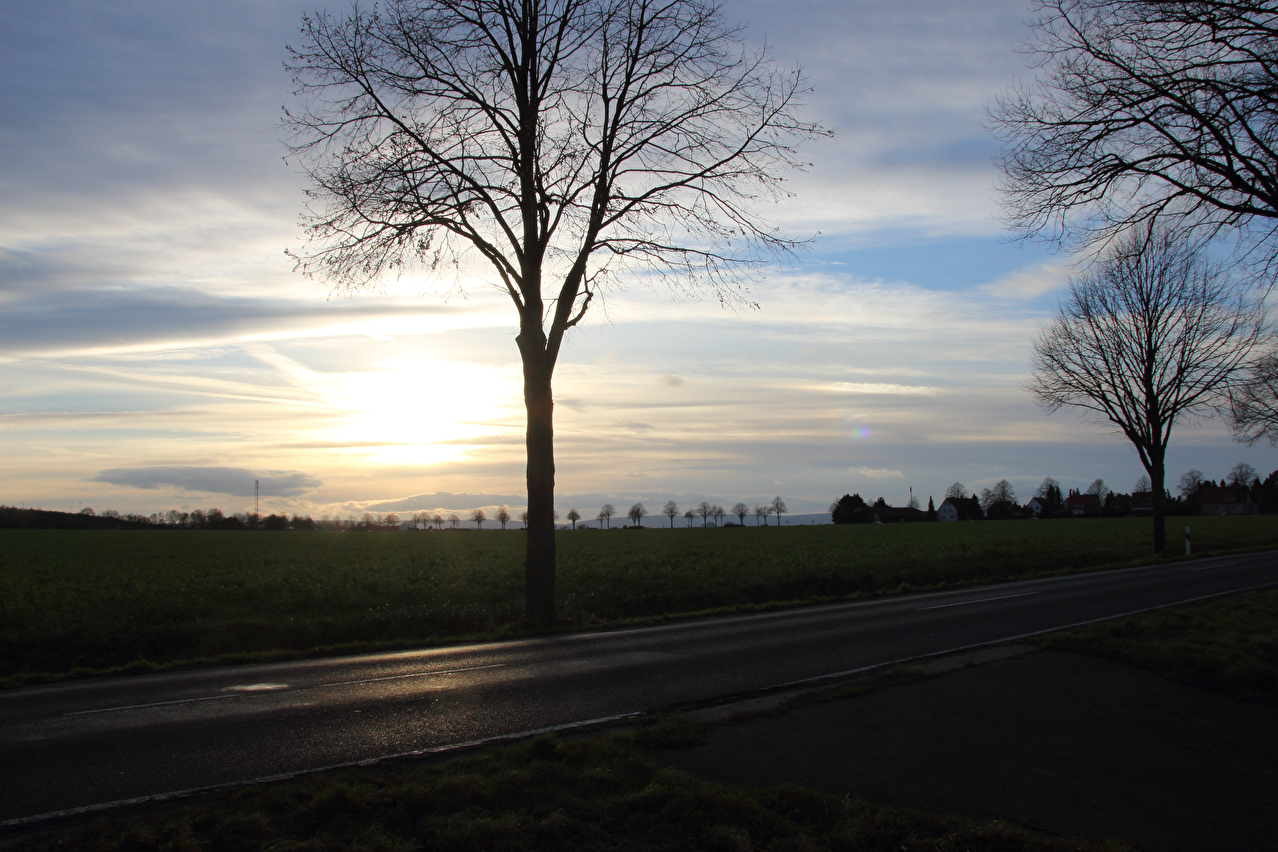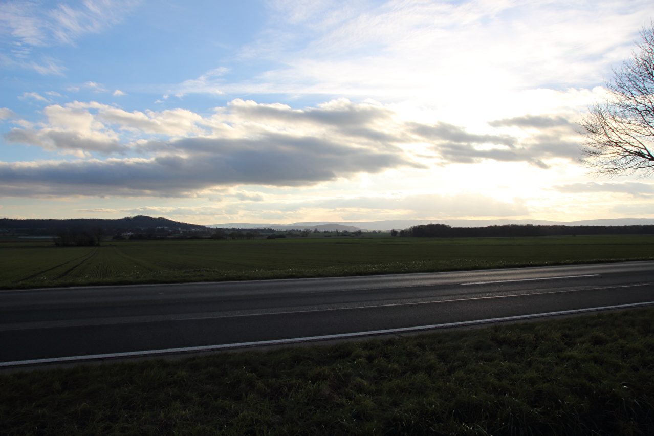 Beschreibung | Nachdem sich dieser Dezember bisher sehr nasskalt und extrem sonnenarm präsentiert hatte, zeigte sich an diesem Wintertag endlich mal die Sonne. Allerdings blies dazu ein starker Wind aus Südwest, weshalb nur eine kurze Tour in Frage kam. Jedesmal, wenn sich eine Wolke vor die Sonne schob, sackte die Temperatur gleich ab und der Wind drehte noch weiter auf. Wenigstens lag kein Schnee, denn dafür war es doch zu warm. Zum Ende der Tour hin schoben sich hoch liegende Wolken vor die Sonne, durch die die Sonne zwar noch hell aber kraftlos durchschien, weshalb obenrum noch eine Lage übergezogen werden musste. Winter ist einfach Mist! Die Fernsicht reichte an diesem Tag gerade so eben bis zum verschneiten Brocken im Harz. |