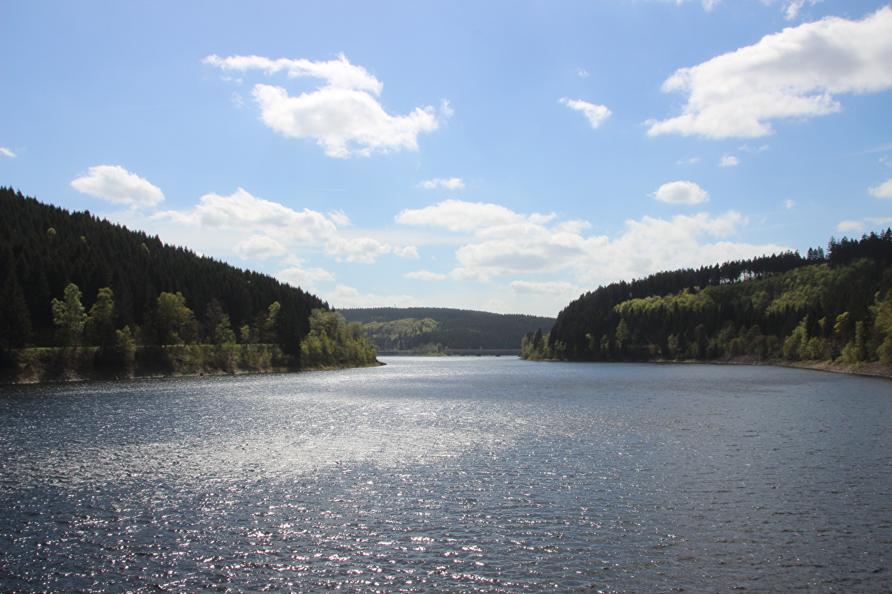 Blick von der Hauptstaumauer der Okertalsperre über den Okerstausee … ![]() 300 dpi JPEG |