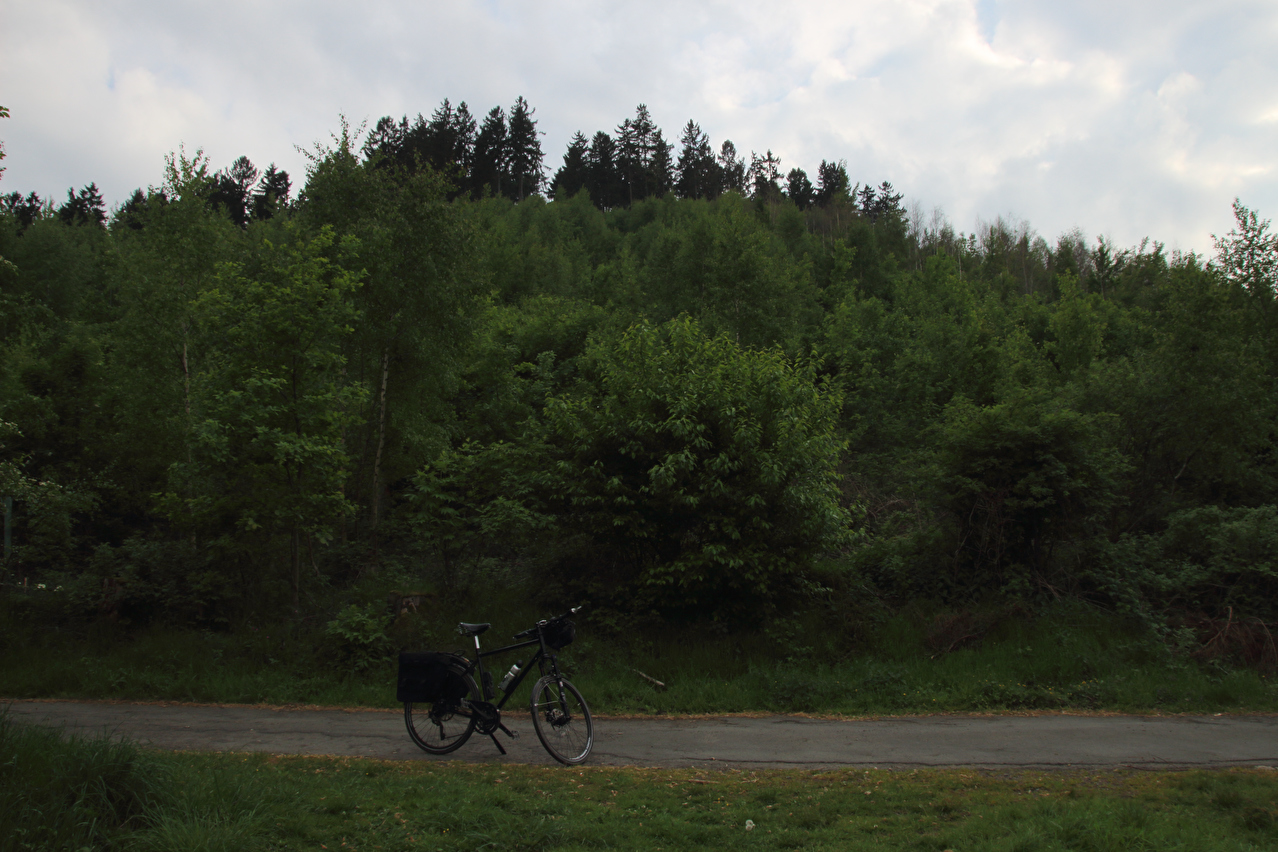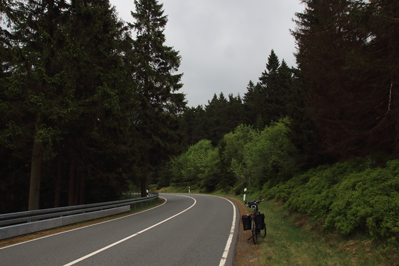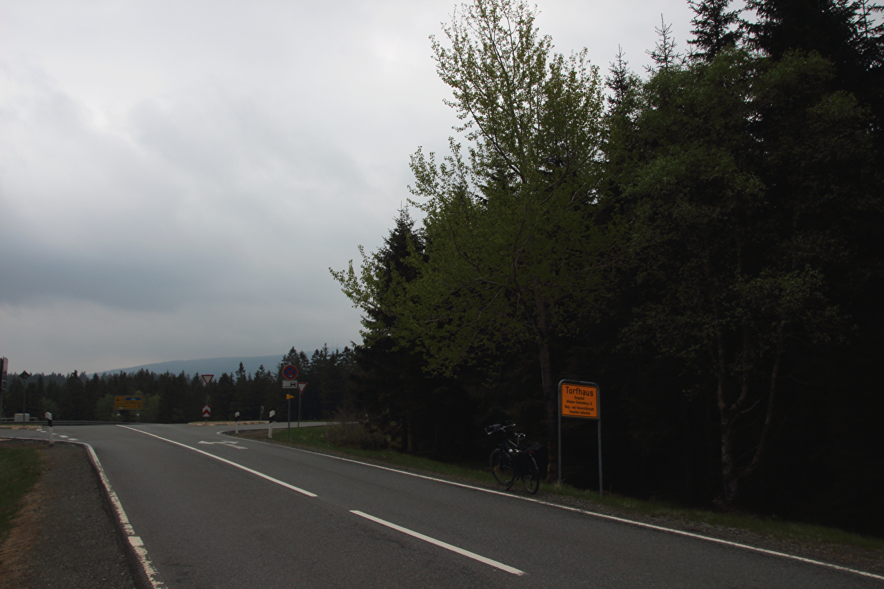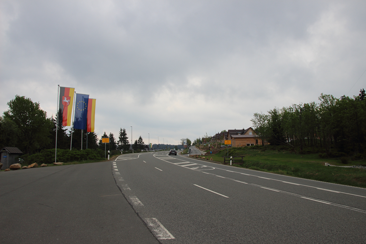 Beschreibung | An diesem Tag zeigte sich der Himmel zum Tourstart schon recht unaufgeräumt und im Verlauf der Tour zog es sich immer weiter zu. Die Wolkenunterkante lag knapp über dem Brockengipfel und die Wolken verdeckten den oberen Teil des dortigen Sendemasts. Regen blieb aber aus. Kalt war es trotzdem nicht. Da es sich bei dem Wetter gut fahren ließ, wurde die Tour ab Torfhaus etwas verlängert. Von der B4 wurde ins Kalbetal abgebogen und ab Oker, dessen Bahnhof mit einem Fahrrad nach wie vor nicht sinnvoll nutzbar war, wurde auf dem Europaradweg R1 nach Goslar gefahren, was noch einige Höhenmeter bergauf mit sich brachte. |
