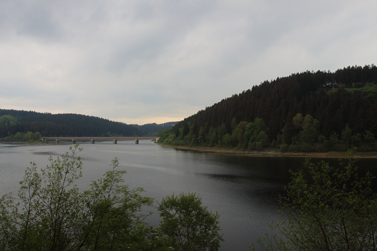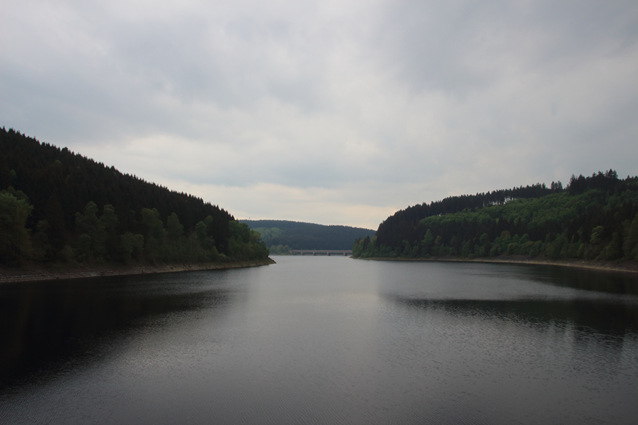 Blick von der Hauptstaumauer der Okertalsperre über den Okerstausee ![]() 300 dpi JPEG |