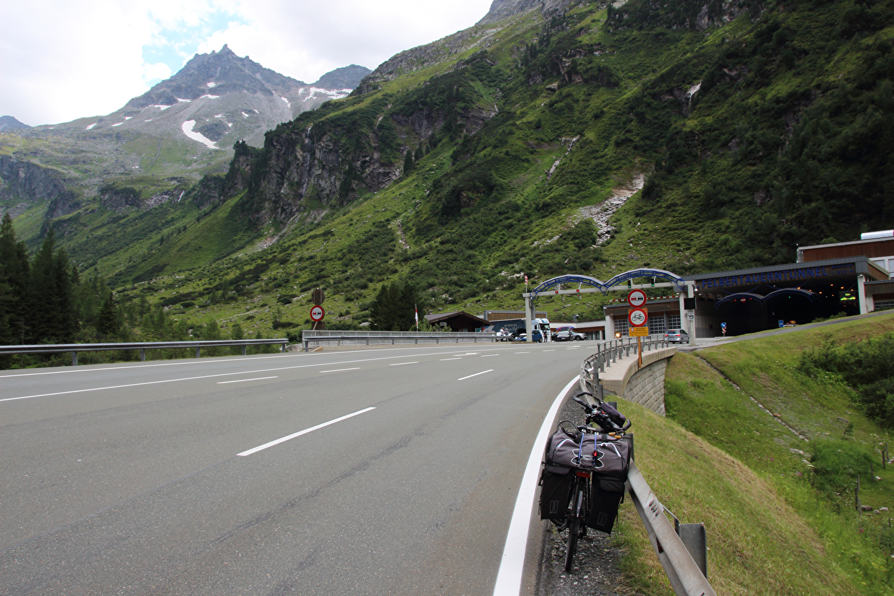 "Höchster Fahrrad fahrend erreichter Punkt der Etappe": Felbertauerntunnel Nordportal ![]() 300 dpi JPEG |