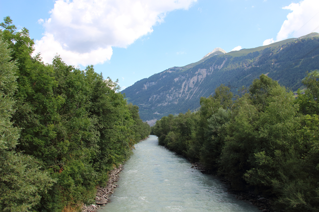 Blick auf die Isel zwischen Prägraten und Hinterbichl und auf Vorderen Finsterwitzkopf und Finsterwitzkopf sowie den Mullwitzkogel dahinter ![]() 300 dpi JPEG |