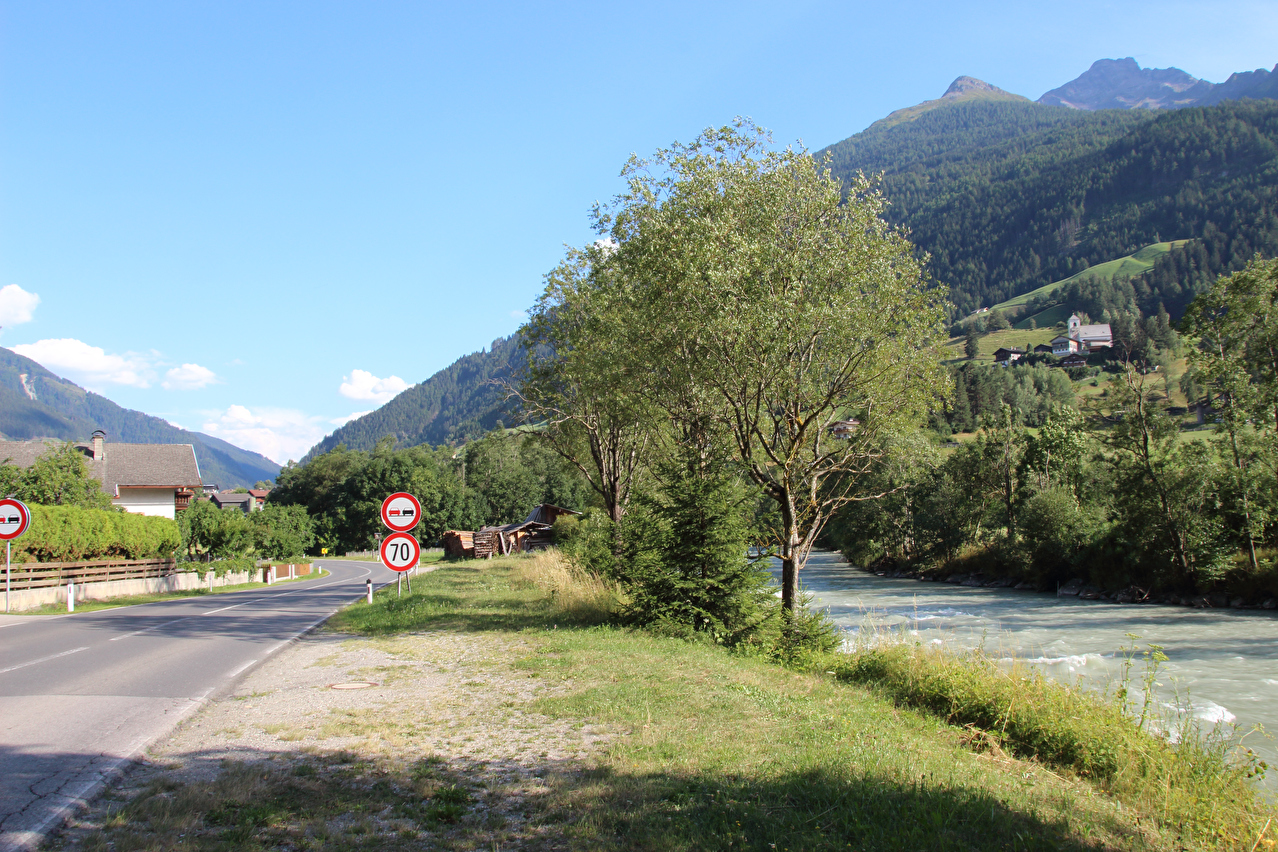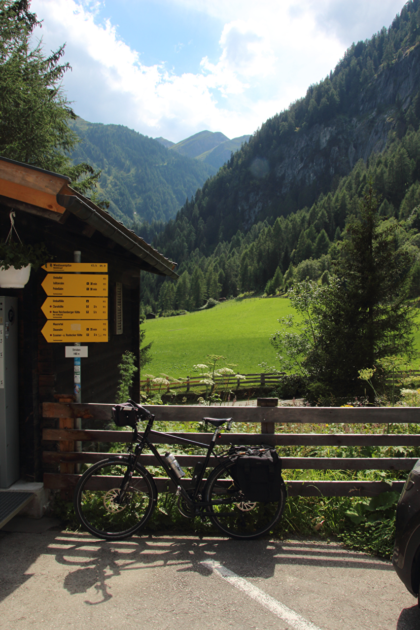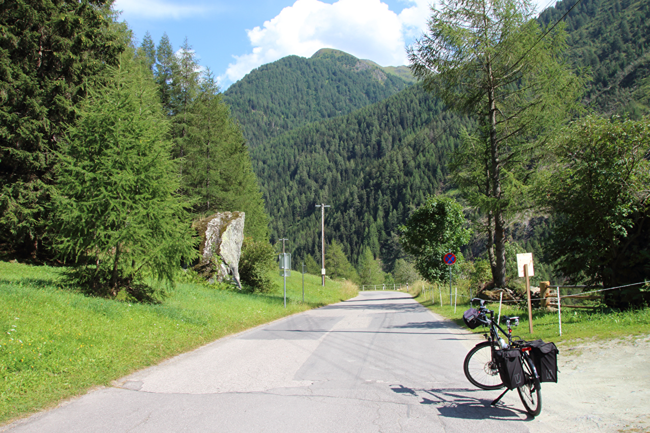 Beschreibung | Diese Etappe war keine Streckenetappe, sondern führte ins Virgental, einer Sackgasse für Fahrradfahrer und wieder zurück nach Matrei. Vorteil solcher Etappen ist, das Gegenden erreicht werden, die bei einer reinen Streckentour nie erreicht werden können. Es gibt aber auch Nachteile. Ursprünglich sollte die Etappe bis zur Pebellalm führen, wie es die Beilage zur verwendeten Landkarte empfiehlt. In Ströden endete jedoch die asphaltierte Straße. Nach den bereits bei Hitze und viel Sonne zurück gelegten Streckenkilometern und Höhenmetern bergauf war in Ströden die Motivation, jetzt noch auf einer Schotterpiste 159 Höhenmeter bergauf, die sich auf gerade einmal 1,6 km verteilen, zu fahren gleich Null. Eine weitere Infotafel verriet zudem, dass sich diese Fahrt auch aus optischen Gründen nicht richtig gelohnt hätte. Letztlich zur Umkehr in Ströden führte aber der Gedanke an die Abfahrt von der Pebellalm mit durchschnittlich fast 10 % Gefälle auf einer Schotterpiste mit einem nicht geländegängigen Fahrrad und Straßenbereifung. Das Risiko für Mensch und Material erschien einfach zu hoch. Bei einer Streckenetappe hätte es die Alternative "Abbruch & Umkehr" nicht gegeben! Die Strecke hätte fahrend oder notfalls schiebend bewältigt werden müssen. Bei Streckenetappen werden bei der Tourplanung Schotterpisten soweit irgend möglich vermieden. Vor Ort kann dann immer noch mal eine Schotterpiste auf dem Weg liegen. Besonders ausgewiesene Radrouten enthalten immer wieder unbefestigte Streckenabschnitte, was nicht immer in den Landkarten oder im Internet dokumentiert ist. In Matrei war an diesem Abend kein Volksfest mehr. Somit konnte im Restaurant des Quartiers das Abendessen aus der Speisekarte gewählt werden. |