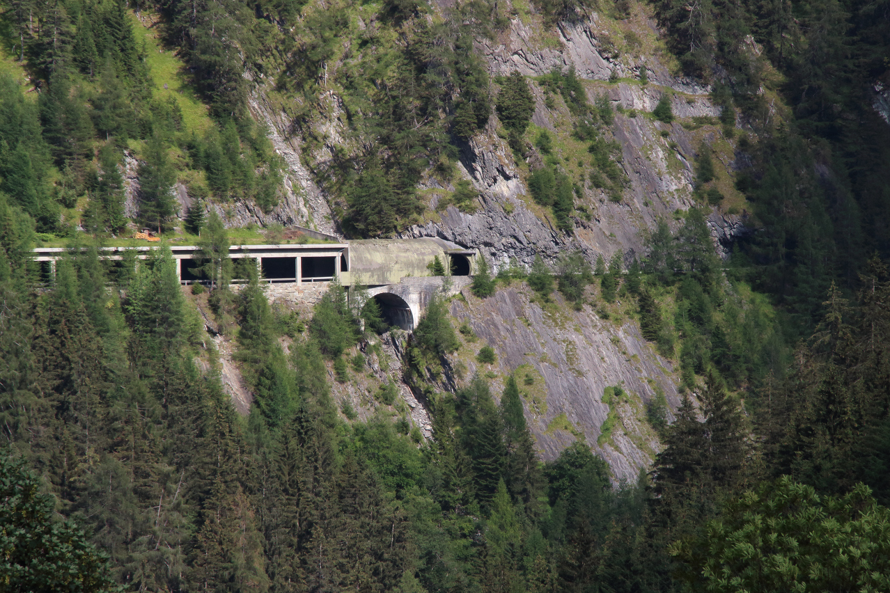 alte gesperrte Straße mit Tunnel und neue Straße im Osthang der Iselschlucht ![]() 300 dpi JPEG |