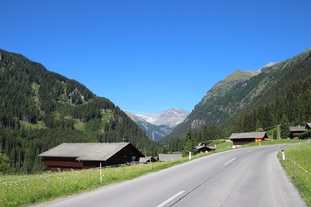 Blick über eine Kehre der Ostrampe ins Defereggental talaufwärts ![]() 300 dpi JPEG |