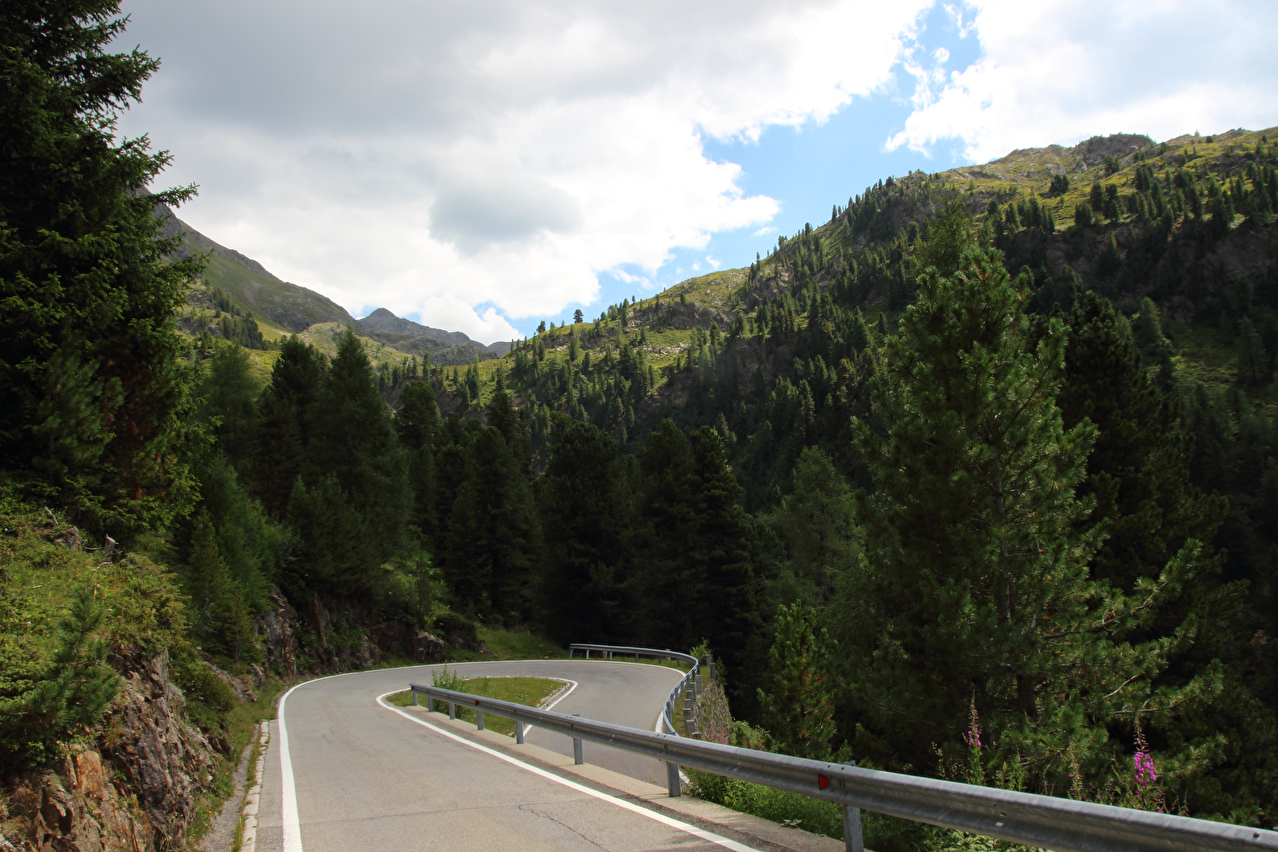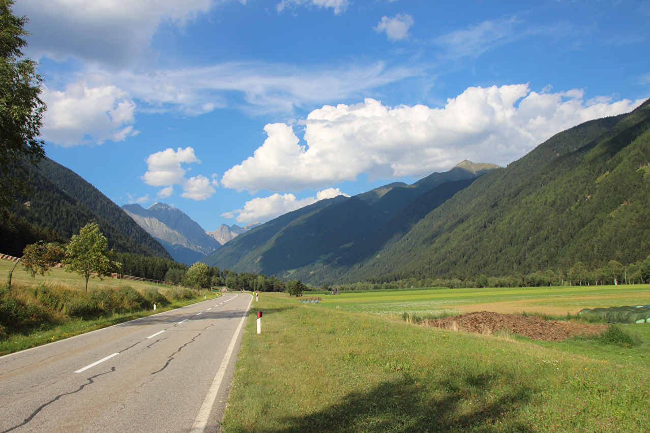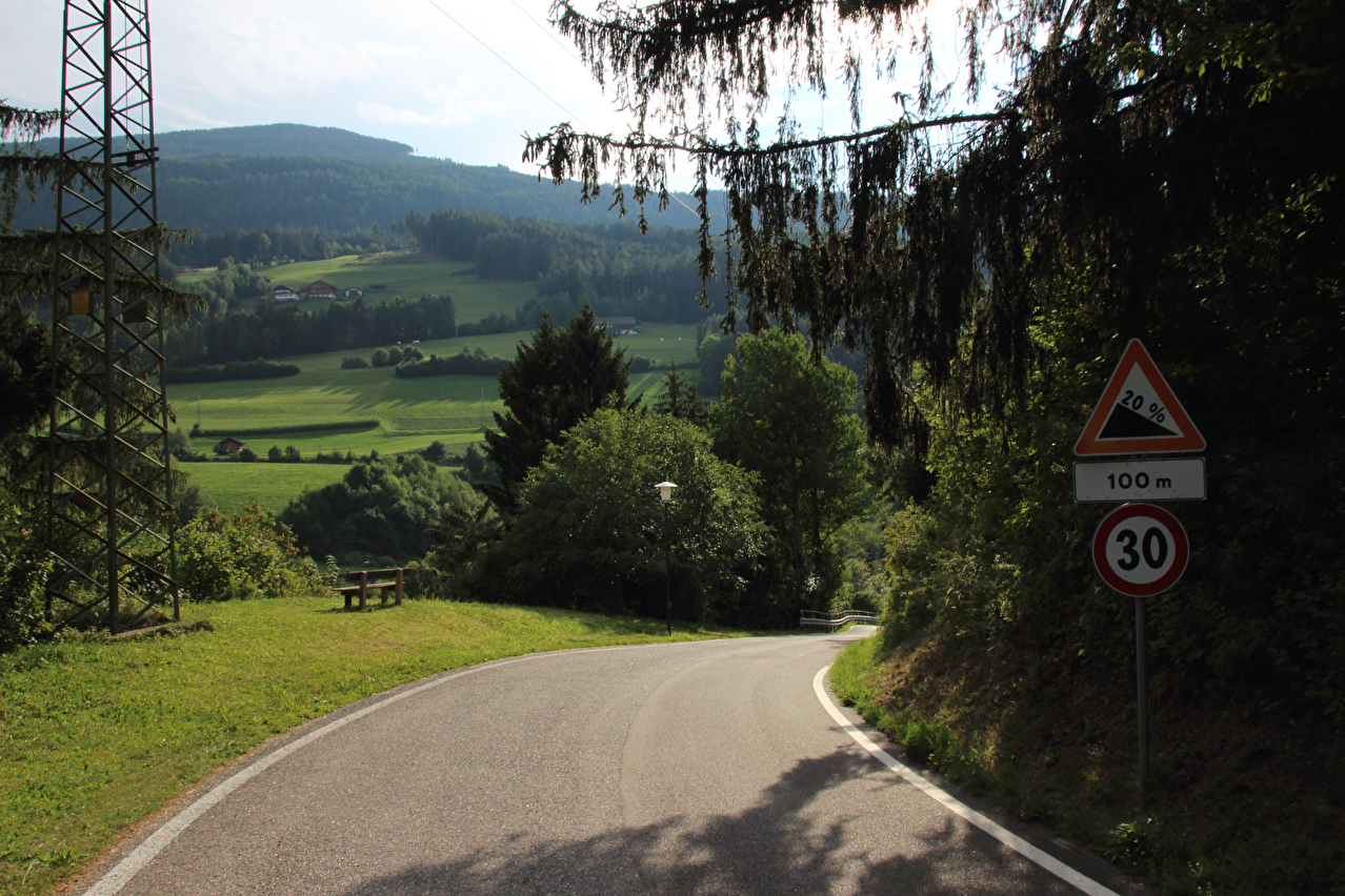 Beschreibung | Gleich ab Maria Hilf ging es ohne Umschweife zur Sache auf die Ostrampe des Staller Sattels. Mit dem Staller Sattel stand endlich der erste 2000er Pass auf dem Tourplan. Gefühlt erfolgte erst hier auch die Alpenüberquerung, denn die Unterquerung des Alpenhauptkamms per passivem Transport durch den Felbertauerntunnel drei Tage zuvor hatte eben dieses Gefühl so rein gar nicht vermittelt. Von Maria Hilf bis Bruneck wurde die inverse Streckenwiederholung vom Vortag fortgesetzt. In der Gegenrichtung war dieser Streckenabschnitt am 05.08.2014 und am 06.08.2014 mit Übernachtung in Antholz-Mittertal gefahren worden. Eine klare Präferenz für die eine oder andere Fahrtrichtung ließ sich dabei nicht feststellen. Während sich der Stinkeverkehr auf der Passstraße in Grenzen hielt, war das Stinkeraufkommen im Bereich der Passhöhe hoch. Dies lag auch am nahe gelegenen Obersee, an den sich viele vor der Hitze in den Tälern geflüchtet hatten. Auf der Passhöhe des Staller Sattels dauerte die Pause mit Mahlzeit etwas länger, was auch an der besonderen Verkehrsregelung für die Südrampe liegt. Die Südrampe ist so schmal, dass dort eine Einbahnregelung gilt. Bergab wird die Abfahrt nur von Minute 0 bis Minute 15 jeder Stunde frei gegeben, bergauf nur von Minute 30 bis Minute 45 jeder Stunde. Bergab reichten mit dem beladenen Reiserad 30 Minuten bei sinniger Fahrweise und einigen Fotopausen nicht aus. Daraus resultierte eine Zwangpause in der Abfahrt, um den bergauf fahrenden Verkehr vorbei ziehen zu lassen. Unterhalb des Antholzer Sees ließ der Fahrspaß etwas nach, denn bergab auf der Talsohle ist immer weniger spektakulär als bergauf. Das war am 06.08.2014 ab Maria Hilf nicht anders. In Antholz-Niedertal wurde bis Niederrasen nicht auf den Radweg gewechselt. Grund dafür war dessen Schotterbelag. Dadurch wurde auf diesem Streckenabschnitt die inverse Streckenwiederholung zumindest kleinräumig umgangen. Auf der Straße, auf der wenig Stinkeverkehr herrschte, war ein materialschonenderes und vor allem schnelleres Vorwärtskommen möglich als auf dem Radweg. Letzteres war bei dieser längsten Etappe der Tour nicht ganz unwesentlich. In Niederrasen wurde wieder auf den Radweg gewechselt, wodurch ein unkompliziertes und somit zeitsparendes Einfädeln auf den Pustertal Radweg ermöglicht wurde. Im Verlauf des Pustertal Radweges lagen dann doch noch einige Schotterpassagen, aber auch die beiden Tunnel nur für Radfahrer, Fußgänger und einige "Berechtigte" mit Stinkekisten, von denen sich aber keine in den Tunneln zeigte. Aufgrund der schon etwas vorgerückten Uhrzeit lagen größere Teile des Pustertal Radweges schon im Schatten, wodurch es nicht mehr ganz so heiß auf dem Radweg war. Die Ankunft in St. Georgen erfolgte erst gegen 18:30 MESZ, weshalb erst das restaurantlose Quartier aufgesucht und anschließend in einem Restaurant gegessen wurde. |