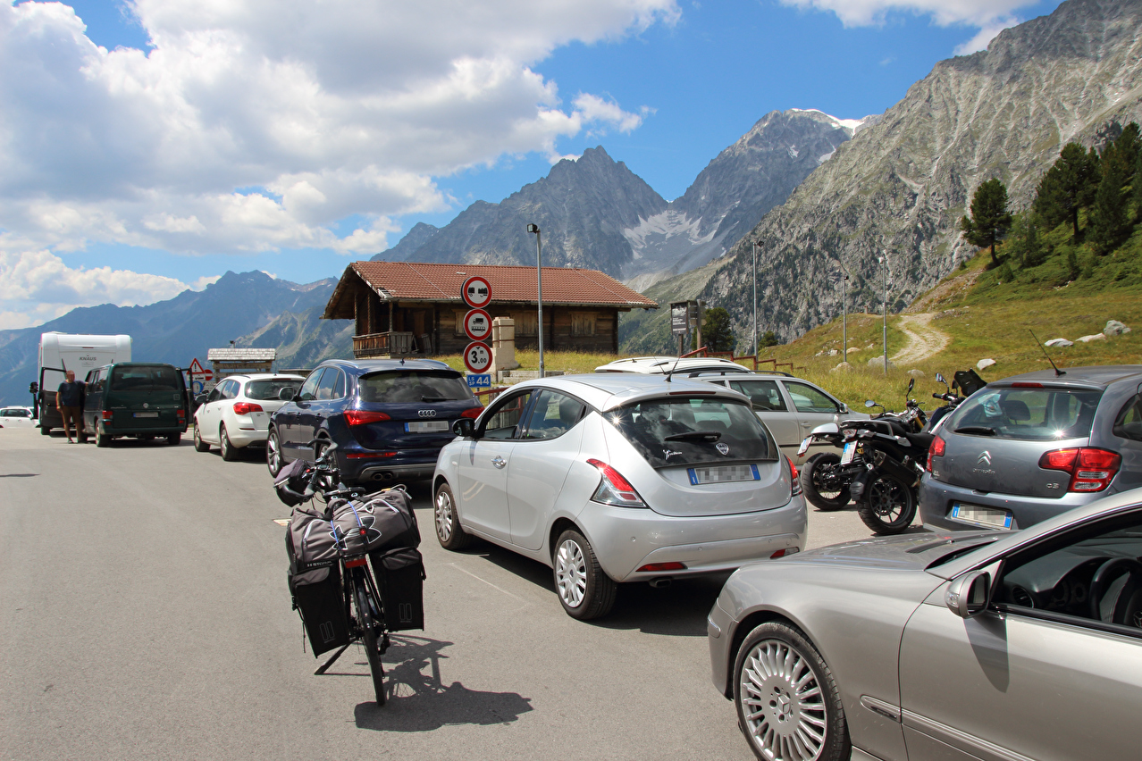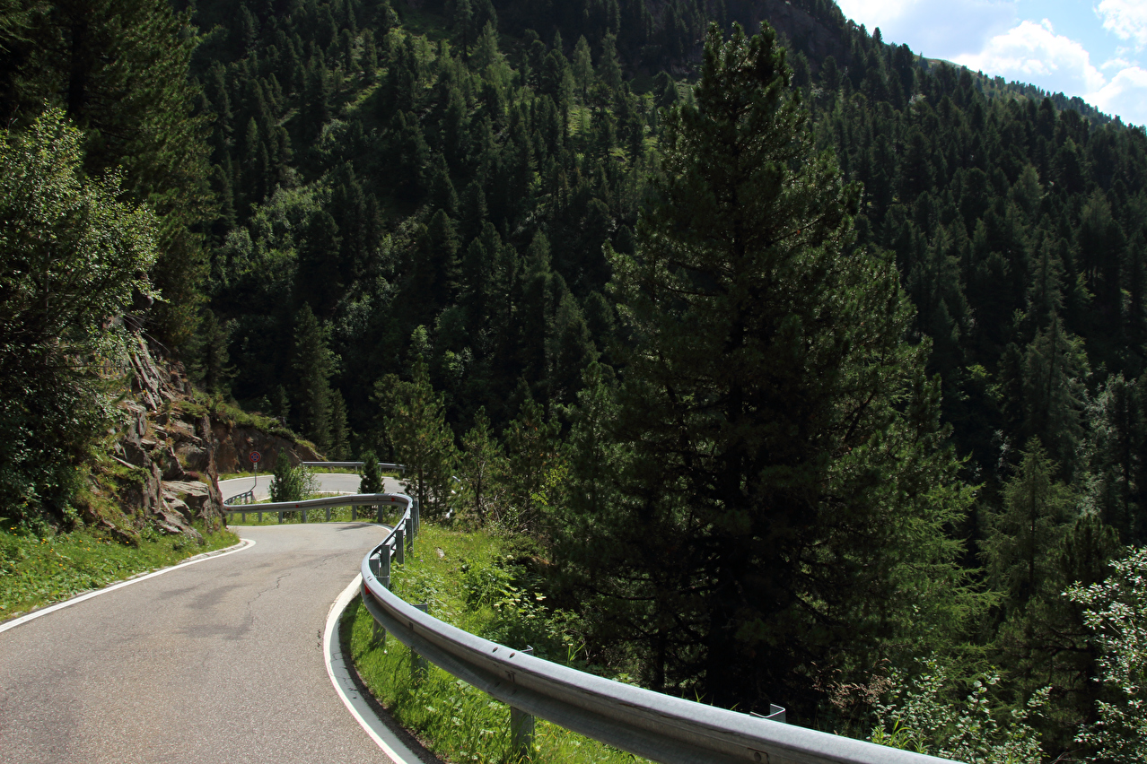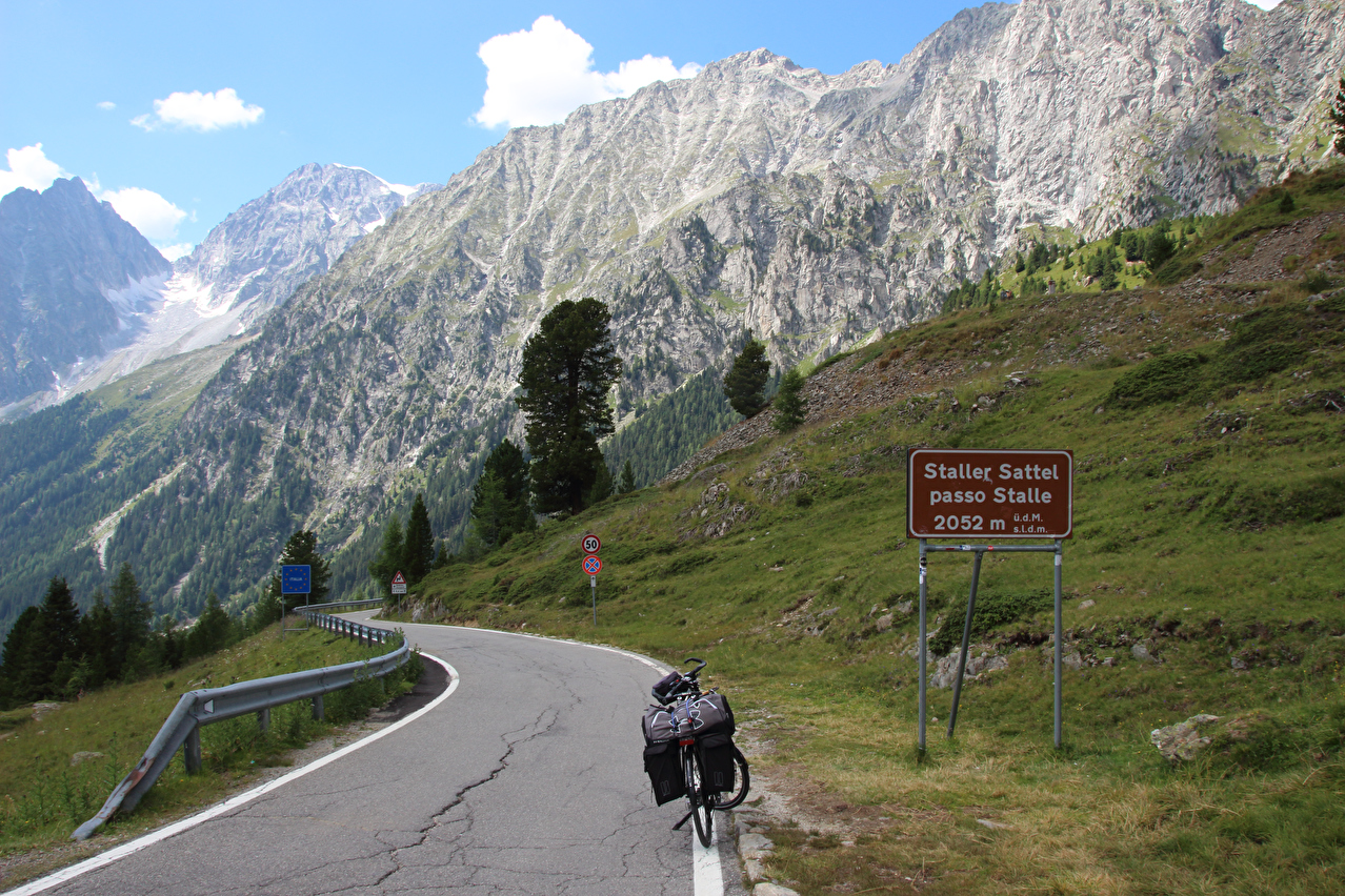Beschreibung | Gleich ab Maria Hilf ging es ohne Umschweife zur Sache auf die Ostrampe des Staller Sattels. Mit dem Staller Sattel stand endlich der erste 2000er Pass auf dem Tourplan. Gefühlt erfolgte erst hier auch die Alpenüberquerung, denn die Unterquerung des Alpenhauptkamms per passivem Transport durch den Felbertauerntunnel drei Tage zuvor hatte eben dieses Gefühl so rein gar nicht vermittelt. Von Maria Hilf bis Bruneck wurde die inverse Streckenwiederholung vom Vortag fortgesetzt. In der Gegenrichtung war dieser Streckenabschnitt am 05.08.2014 und am 06.08.2014 mit Übernachtung in Antholz-Mittertal gefahren worden. Eine klare Präferenz für die eine oder andere Fahrtrichtung ließ sich dabei nicht feststellen. Während sich der Stinkeverkehr auf der Passstraße in Grenzen hielt, war das Stinkeraufkommen im Bereich der Passhöhe hoch. Dies lag auch am nahe gelegenen Obersee, an den sich viele vor der Hitze in den Tälern geflüchtet hatten. Auf der Passhöhe des Staller Sattels dauerte die Pause mit Mahlzeit etwas länger, was auch an der besonderen Verkehrsregelung für die Südrampe liegt. Die Südrampe ist so schmal, dass dort eine Einbahnregelung gilt. Bergab wird die Abfahrt nur von Minute 0 bis Minute 15 jeder Stunde frei gegeben, bergauf nur von Minute 30 bis Minute 45 jeder Stunde. Bergab reichten mit dem beladenen Reiserad 30 Minuten bei sinniger Fahrweise und einigen Fotopausen nicht aus. Daraus resultierte eine Zwangpause in der Abfahrt, um den bergauf fahrenden Verkehr vorbei ziehen zu lassen. Unterhalb des Antholzer Sees ließ der Fahrspaß etwas nach, denn bergab auf der Talsohle ist immer weniger spektakulär als bergauf. Das war am 06.08.2014 ab Maria Hilf nicht anders. In Antholz-Niedertal wurde bis Niederrasen nicht auf den Radweg gewechselt. Grund dafür war dessen Schotterbelag. Dadurch wurde auf diesem Streckenabschnitt die inverse Streckenwiederholung zumindest kleinräumig umgangen. Auf der Straße, auf der wenig Stinkeverkehr herrschte, war ein materialschonenderes und vor allem schnelleres Vorwärtskommen möglich als auf dem Radweg. Letzteres war bei dieser längsten Etappe der Tour nicht ganz unwesentlich. In Niederrasen wurde wieder auf den Radweg gewechselt, wodurch ein unkompliziertes und somit zeitsparendes Einfädeln auf den Pustertal Radweg ermöglicht wurde. Im Verlauf des Pustertal Radweges lagen dann doch noch einige Schotterpassagen, aber auch die beiden Tunnel nur für Radfahrer, Fußgänger und einige "Berechtigte" mit Stinkekisten, von denen sich aber keine in den Tunneln zeigte. Aufgrund der schon etwas vorgerückten Uhrzeit lagen größere Teile des Pustertal Radweges schon im Schatten, wodurch es nicht mehr ganz so heiß auf dem Radweg war. Die Ankunft in St. Georgen erfolgte erst gegen 18:30 MESZ, weshalb erst das restaurantlose Quartier aufgesucht und anschließend in einem Restaurant gegessen wurde. |