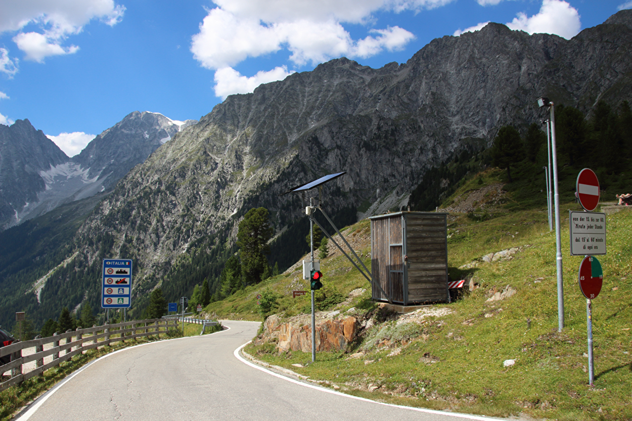 nahe der Passhöhe Hinweis auf die Verkehrsregelung am Staller Sattel ![]() 300 dpi JPEG |