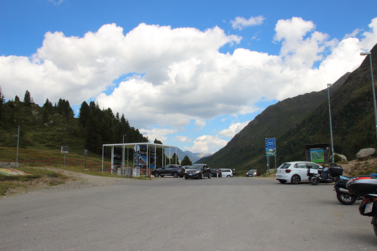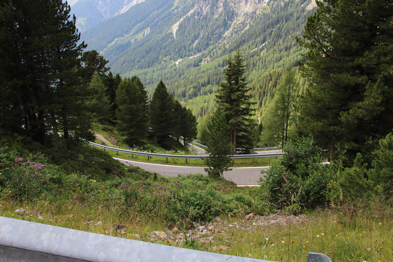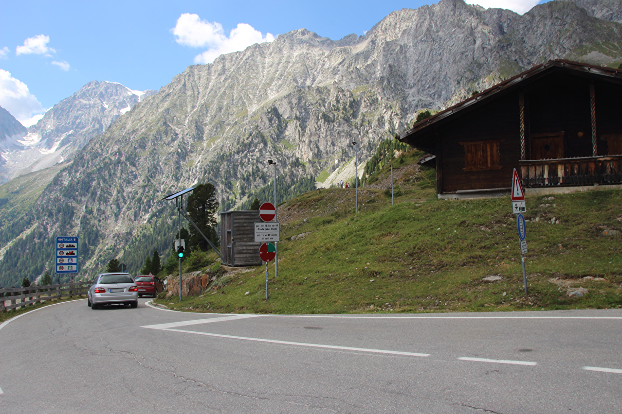 oberes Ende der Westrampe, Beginn der Abfahrt nach Italien – erfreulich: diese dämlichen Bapperl werden auch mal von den Schildern entfernt ![]() 300 dpi JPEG |