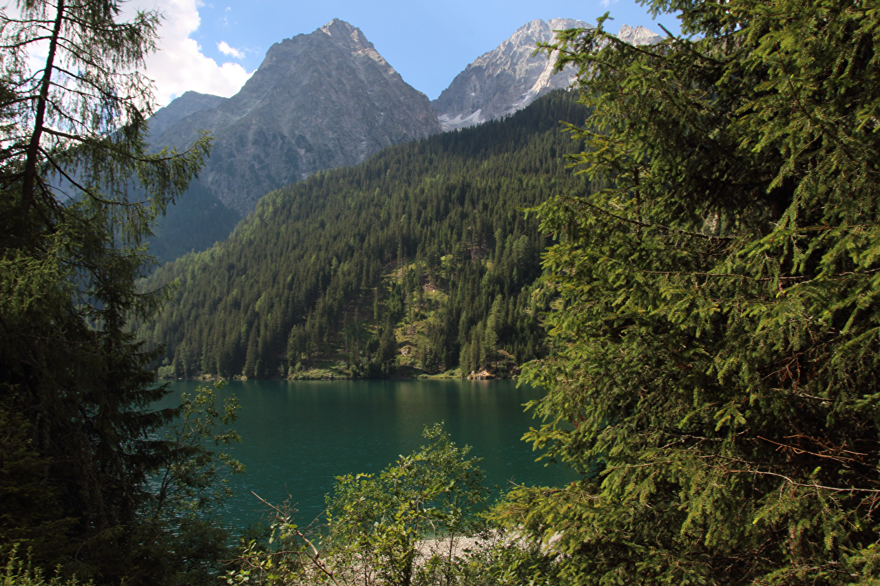 Blick über den Antholzer See ins Antholzer Tal talabwärts ![]() 300 dpi JPEG |
