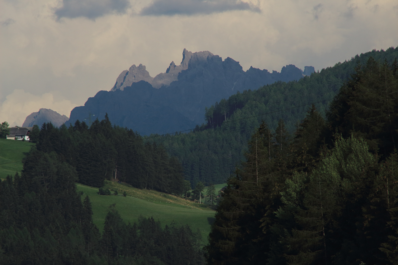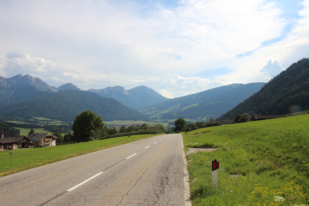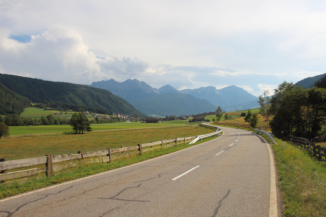 Blick talabwärts auf Oberrasen und die Pragser Dolomiten am Horizont ![]() 300 dpi JPEG |