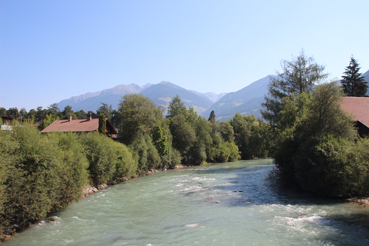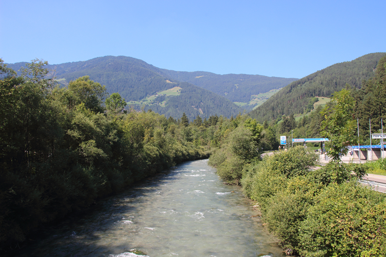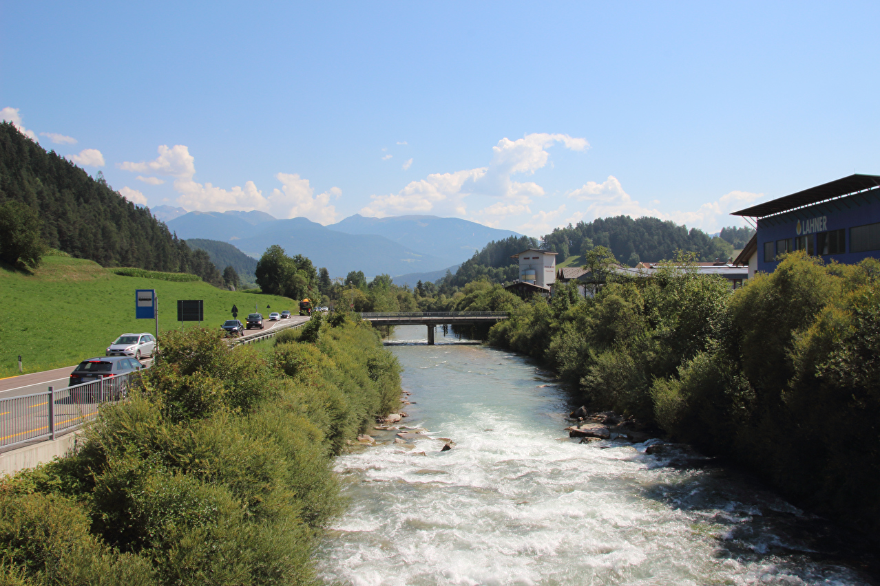 … und Blick über die Brücke nach Westen auf den Pustertal Radweg ![]() 300 dpi JPEG |