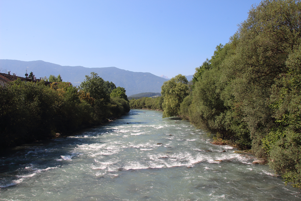 Pustertal Radweg und Rienz in St. Lorenzen, Blick flussabwärts … ![]() 300 dpi JPEG |