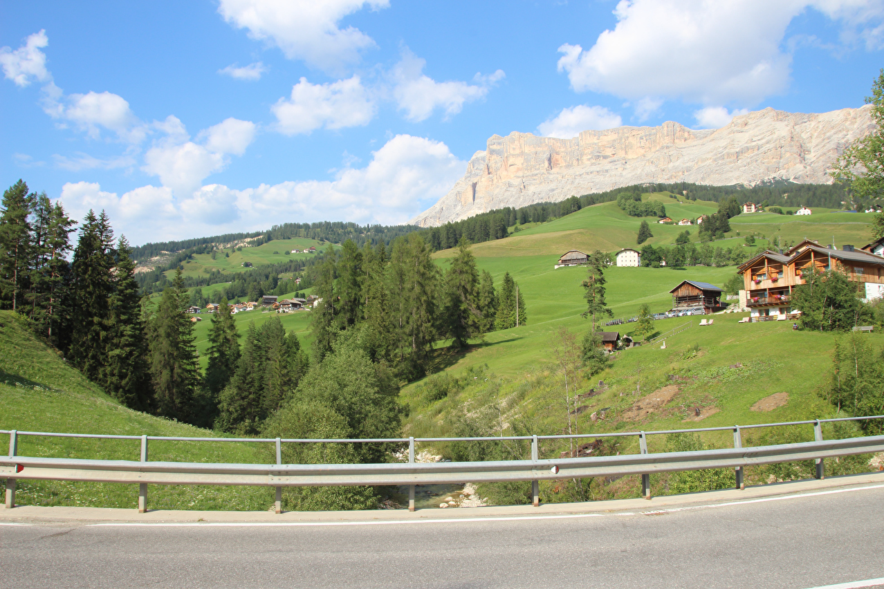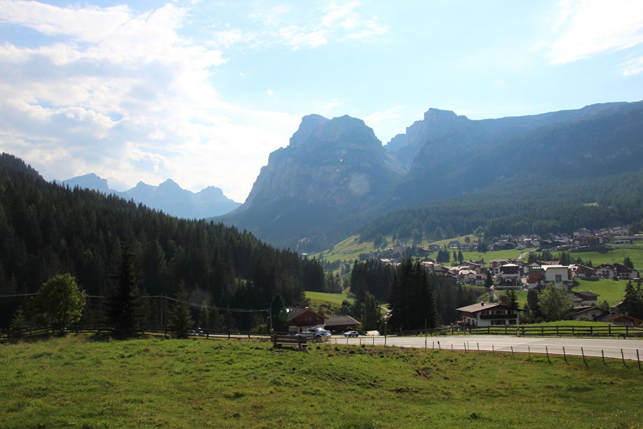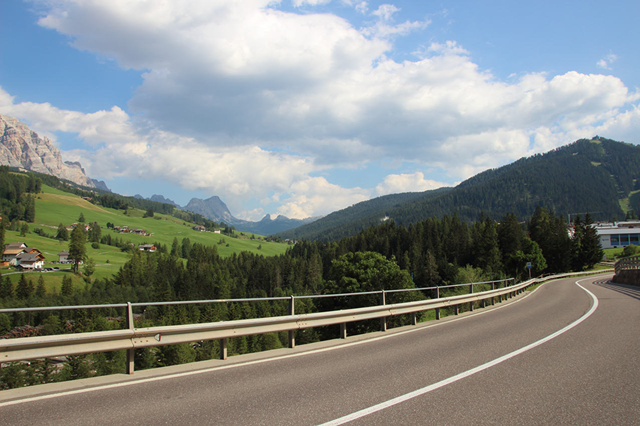 Beschreibung | Diese Etappe setzte die inverse Streckenwiederholung der fünften und sechsten Etappe bis Sankt Lorenzen fort. Dort erfolgte der Wechsel ins Gadertal. Der Streckenabschnitt von der Kreuzung des Pustertal Radweges mit der Gadertalstraße bis nach Stern war eine Streckenwiederholung und inverse Streckenwiederholung. In der selben Richtung war dieser Streckenabschnitt am 27.07.2010 gefahren worden, in der Gegenrichtung am 05.08.2014. Anders als am 27.07.2010 wurde auf die Umfahrungen der unteren Tunnel im Gadertal verzichtet, da die alte Straße laut Beschilderung nicht mehr dafür vorgesehen ist. Bei der ins Tal drückenden Sonne und der im Tal stehenden Hitze boten die Tunnel zudem etwas Abkühlung. In Stern wurde nach St. Kassian abgebogen. Die Straße fällt in Stern steil bis auf die Talsohle ab und steigt nach Überquerung der Gader wieder stramm an, wobei einige Kehren in diesem Bereich die Steigung wenigstens etwas reduzieren. Mit St. Kassian wurde die zweite Bergankunft im Rahmen dieser Tour erreicht. Der Ort liegt im Hang. Während einige Straßen im Ort mehr oder weniger parallel zum Hang verlaufen, verlaufen andere Straßen mehr oder weniger in direkter Falllinie mit Gradienten im deutlich zweistelligen Prozentbereich. Auf diesen Sraßen war Schieben angesagt. Während des Abendessens in St. Kassian zogen vermehrt dunkle Wolken auf. Das restaurantlose Quartier wurde gerade noch rechtzeitig erreicht. Etwas später setzte Regen ein, der sich zu einem Gewitter mit Starkregen intensivierte. |