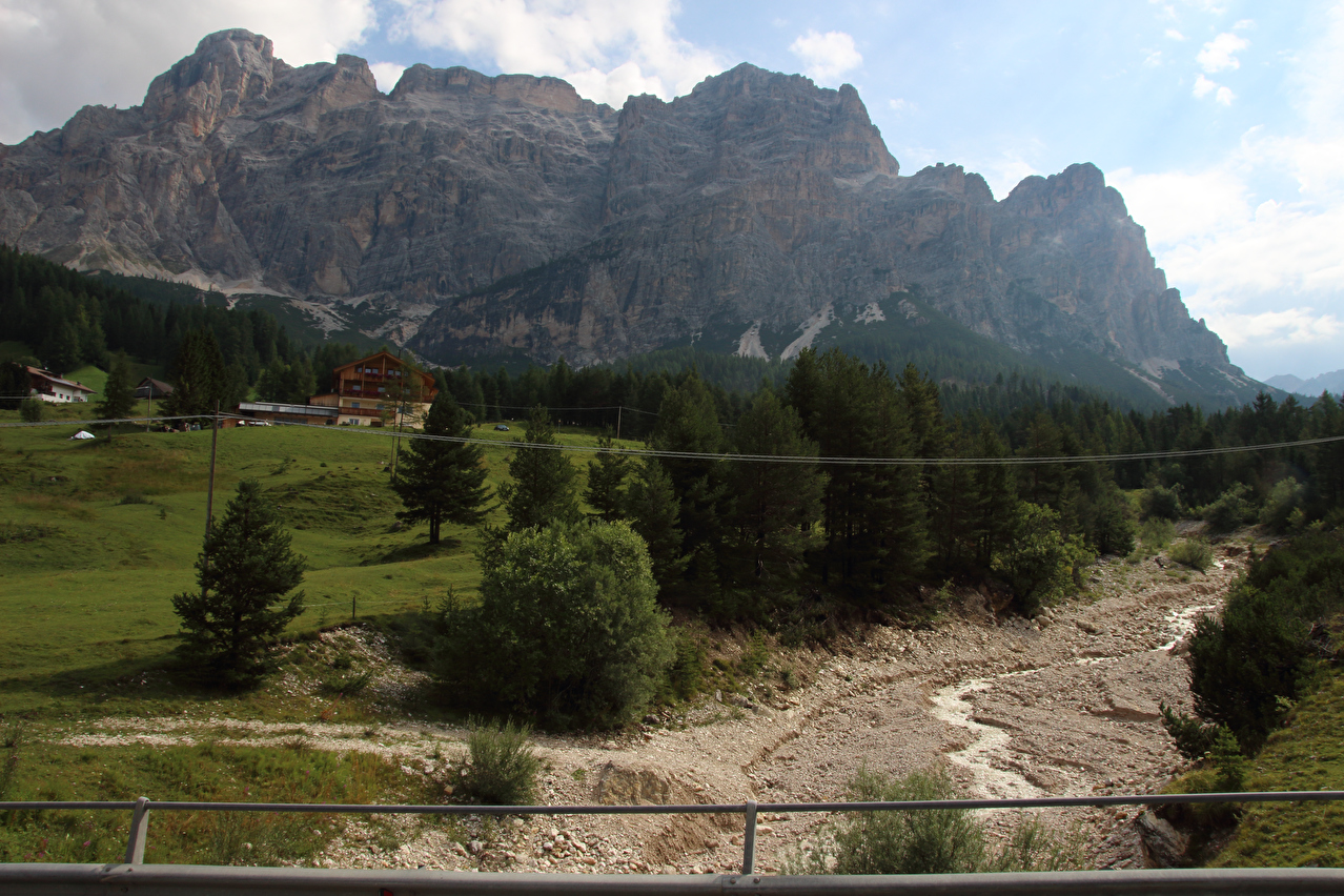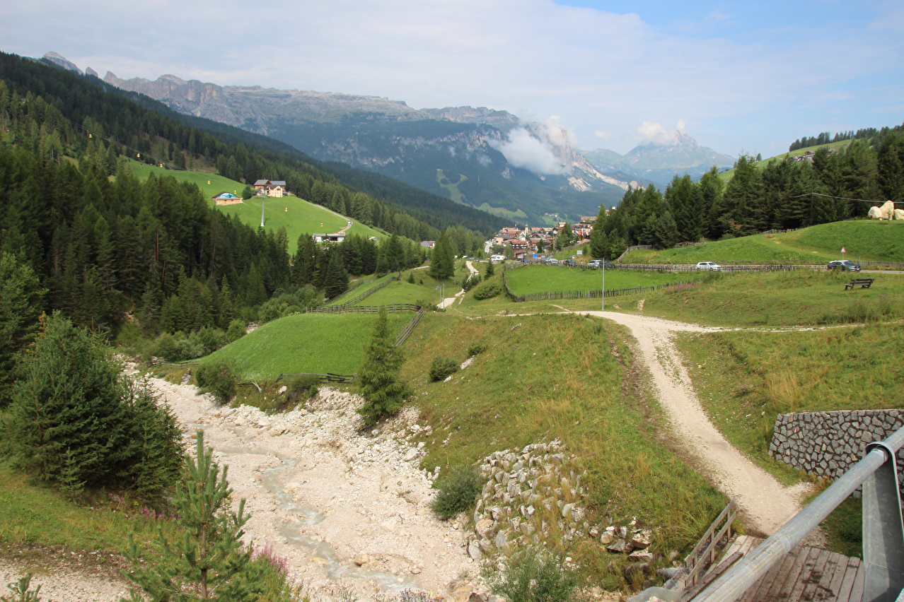 … und Blick flussabwärts über St. Kassian auf Puezgruppe und Peitlerkofel ![]() 300 dpi JPEG |