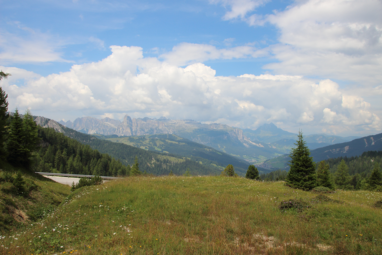 Blick über die Passhöhe nach Nordwesten, am Horizont die Puezgruppe … ![]() 300 dpi JPEG |