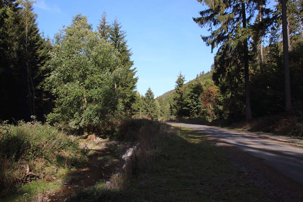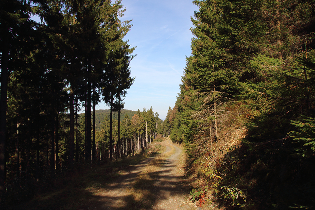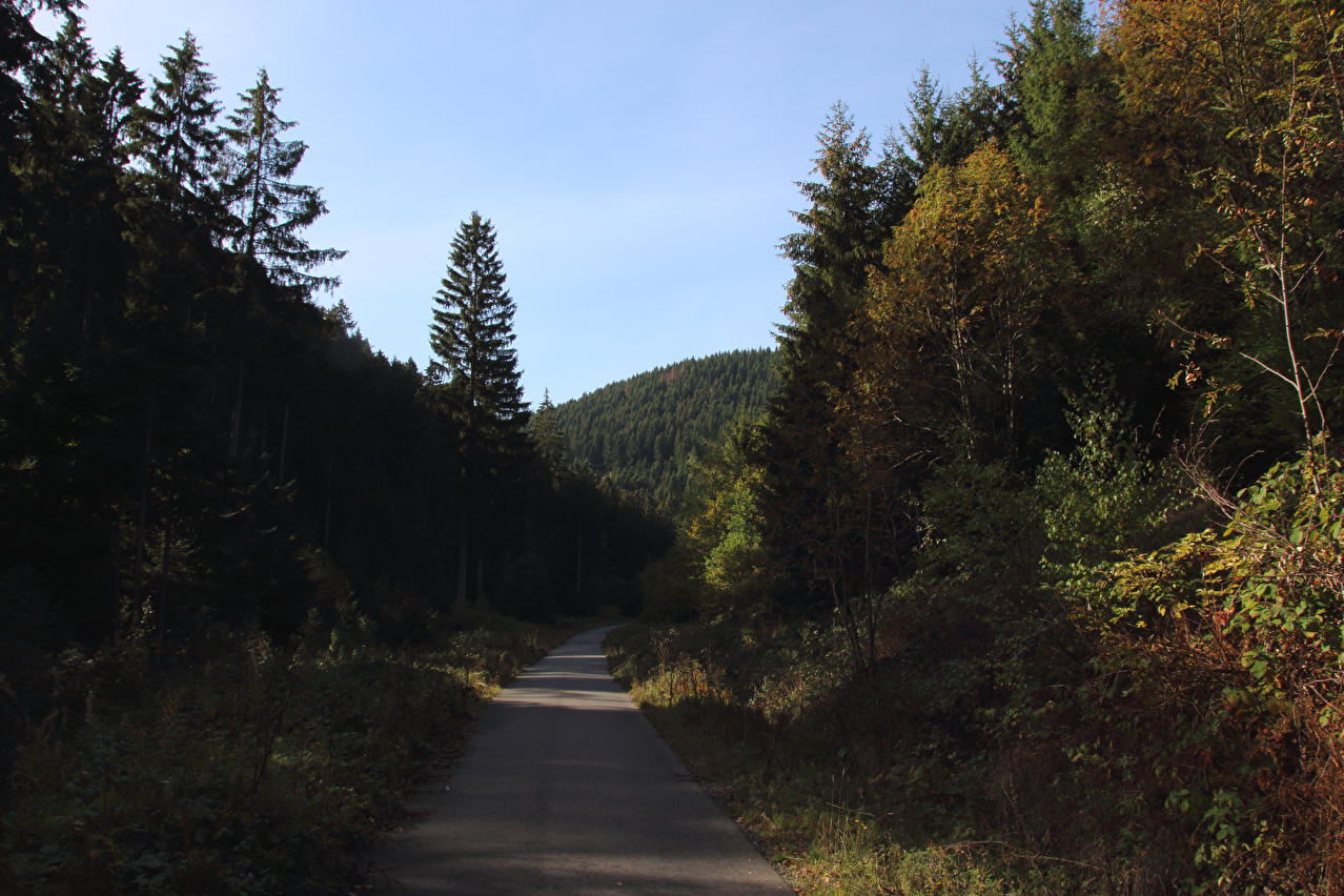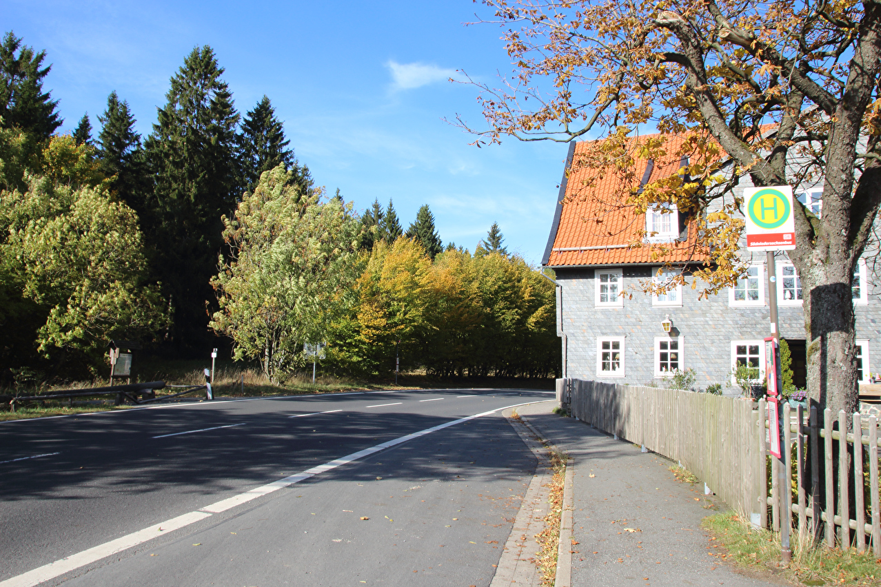 Beschreibung | Die Planung dieser Tour wurde nicht nur durch die schon recht kurze Tageslänge sondern vor allem durch zwei Eisenbahnbaustellen in Hannover (Neubau der Brücke über die Königstraße, dadurch Unterbrechung aller Gleise direkt südlich des Hauptbahnhofs) und Oker (Neubau des Bahnhofs, dadurch Unterbrechung aller Gleise im Bahnhofsbereich) bestimmt. Als Folge dieser beiden Eisenbahnbaustellen fuhr der Regionalexpress, der normalerweise zwischen Hannover Hauptbahnhof und Bad Harzburg verkehrt, an diesem Tag nur zwischen Hannover Bismarkstraße und Goslar. Somit bot sich eine Fahrt mit dem geländegängigen Fahrrad auf den Schalke mit Start und Ziel in Goslar an, zumal diese Tour bisher nur im Frühjahr gefahren worden war. Da die Sonen recht ungestört vom Himmel schien, war es unten recht warm. Der Südwind blies kräftig und kam im Abzuchttal daher direkt von vorne. Neben herbstlich verfärbtem Laub zeigten sich im Harz auch deutliche Schäden der lang anhaltenden Dürre. Weiter oben wurde es trotz Sonennschein zunehmend frischer. Der Schalke gehört nicht gerade zu den höchsten Bergen im Harz, aber aufgrund seiner weit nordwestlichen Lage ist er doch sehr exponiert. Auf dem Gipfel wurden für die Abfahrt lange Klamotten notwendig. Da auf der B241 wenig Stinkeverkehr herrschte, die Sonne schon tief stand und mit einer Fahrt auf dieser Strecke absehbar auch der nächste Zug erreicht werden würde, wurde dieses Mal nicht auf der Alten Harzstraße abgefahren. Irgendwie deutete es sich an: Die unterste Kehre der B241 war die letzte Kehre in diesem Jahr. |