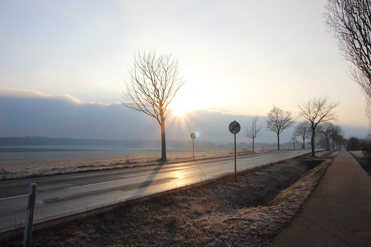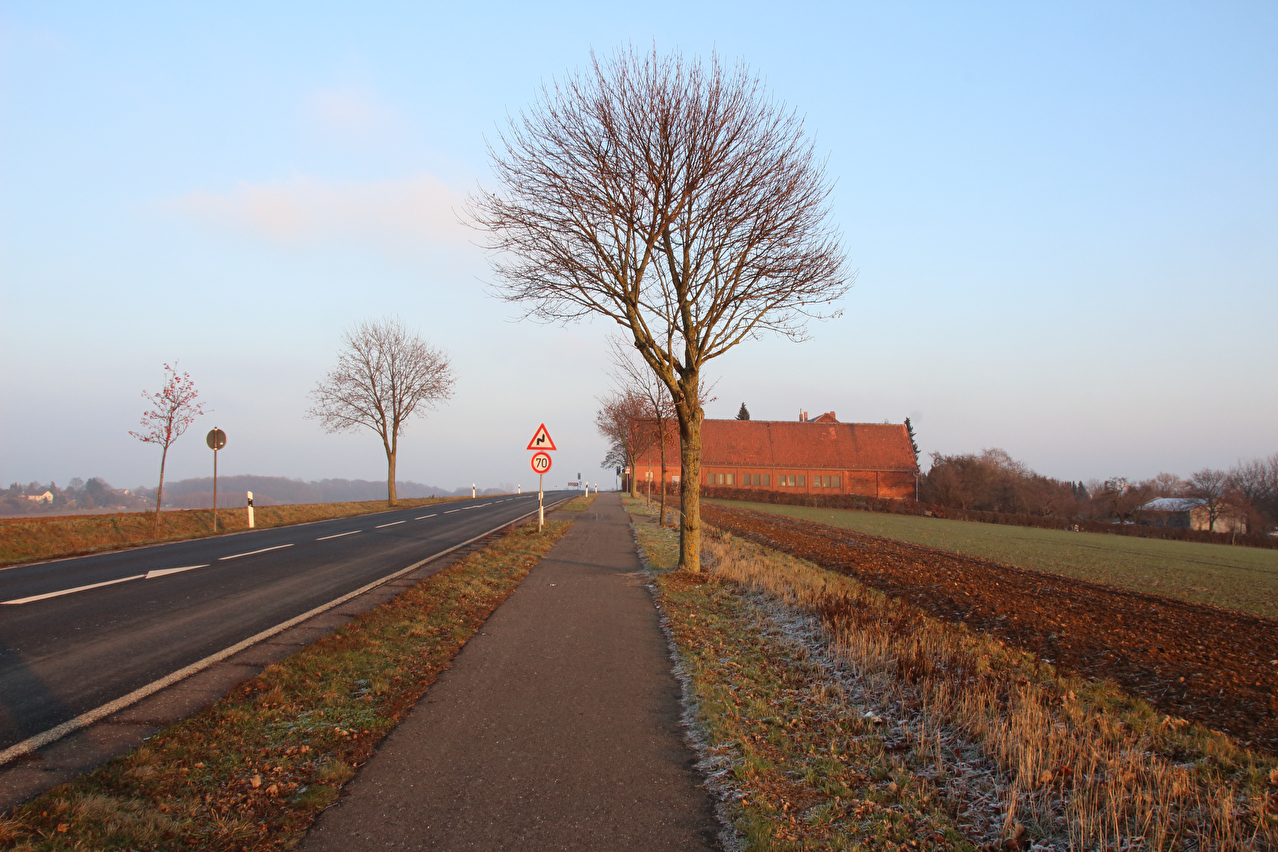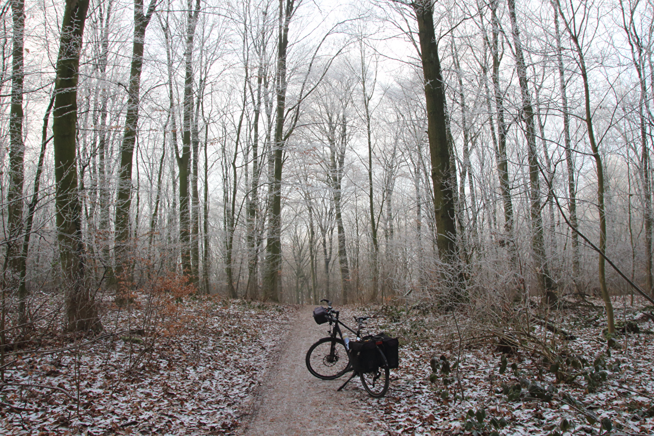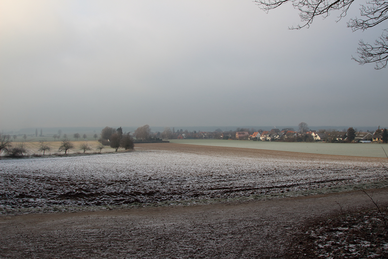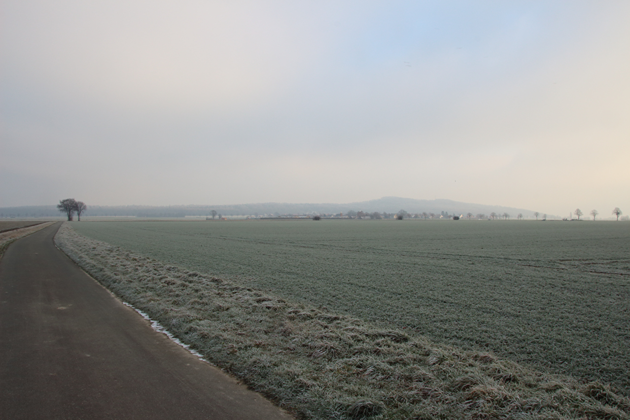 Beschreibung | Nach dem sehr verregneten Jahresbegionn war die Kälte gekommen. Immerhin schien über Hannover die Sonne und es war einer der ganz wenigen Tage mit fast Windstille in Hannover und umzu. Bei sehr frischen −1 °C wurde daher die Fahrradsaison mit einer kurzen Tour gestartet. Aber schon in Velber war erst mal Schluss mit Sonne. Tiefliegende Wolken vernebelten den Himmel im Süden. Da die Feld- und Waldwege hart gefroren waren, bot sich eine Fahrt über den Benther Berg an, um wenigstens für einige Mintuen in die richtige Richtung, also bergauf zu fahren. Auf dem Kamm des Benther Berges boten die kahlen, aber nahezu komplett bereiften Laubbäume einen bizarren Anblick. Zum Ende der Tour kam ab Döteberg dann doch nochmal die Sonne zum Vorschein. Die Fernsicht reichte an diesem dunstigen Tag nicht einmal bis zum Deister. |