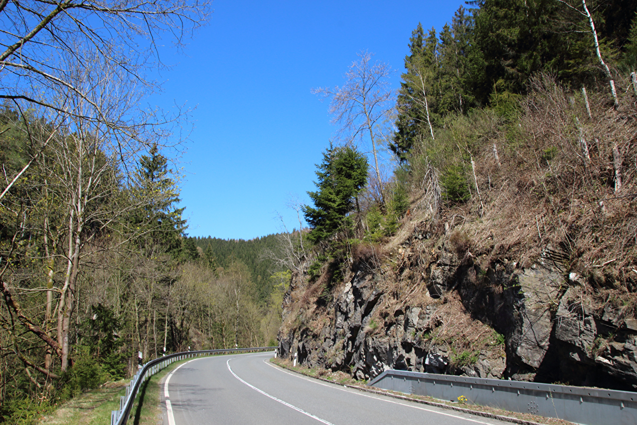 Beschreibung | Diese Harztour begann wie so oft im Okertal, dieses Mal aber mit dem geländegängigen Fahrrad. Ab Romkerhalle wurde die Straße verlassen und dann ging es auch gleich mit bis zu 20 % Steigung zur Sache. Die Wege waren teilweise recht rumpelig, was teilweise auch an dort liegenden Resten winterlicher Baumfällarbeiten lag. Ab etwa 600 m ü.NHN, wo der Wald teilweise recht licht ist, zeigte sich, dass die Sonne zwar ordentlich drückte, der Wind aber recht kühle Luft verteilte. In diesem Bereich lag auch ein Steilstück mit sehr schlechtem, rutschigen Belag, dass sich nicht mehr sinnvoll fahren ließ und deshalb geschoben wurde. Dafür ist im Bereich des Schlussanstiegs aus dieser Richtung zum Schalke die früher verblockte Piste durch neuen Belag deutlich entschärft worden. Auf dem Schalke angekommen musste recht schnell lange Kleidung übergezogen werden, da hier der kalte Wind Oberhand gegen die Sonnenwärme hatte und nun ja auch keine Wärme mehr von innen kam. Wegen des sinkenden Sonnenstandes und des unvermindert blasenden kalten Windes wurde für die Abfahrt ab Auerhahn die B241 gewählt, was am Lkw-freien Ostermontag kein Problem war. |
