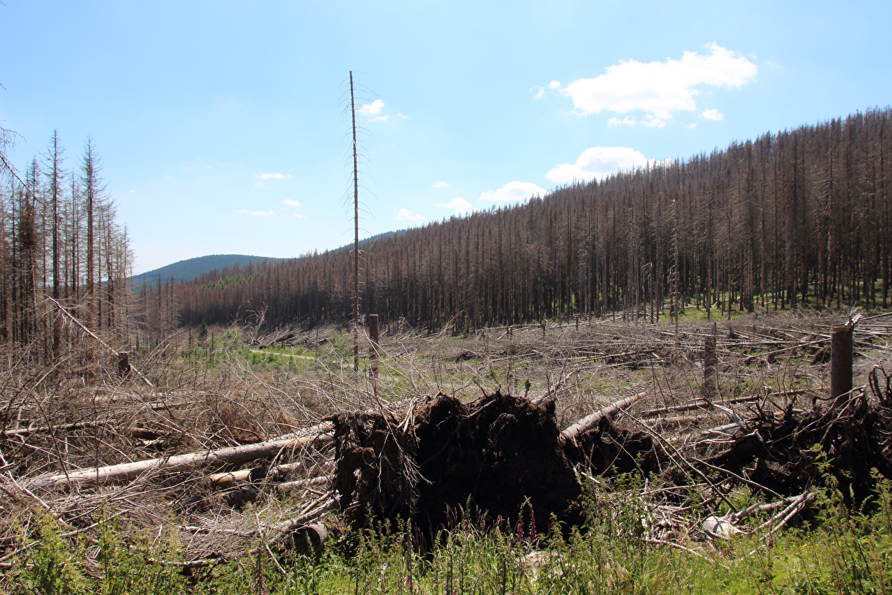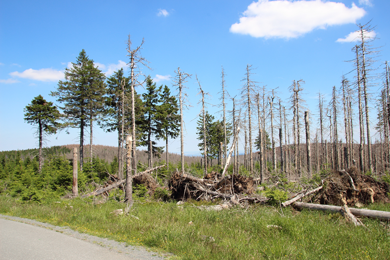 Brockenstraße nördlich von Schierke, Blick nach Norden auf riesige neue Totwaldflächen ![]() 300 dpi JPEG |