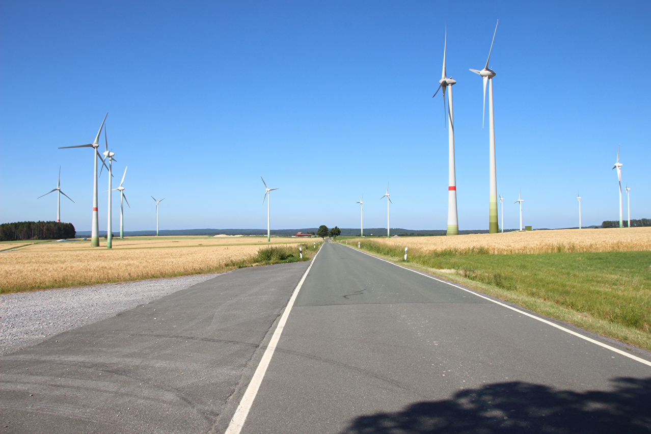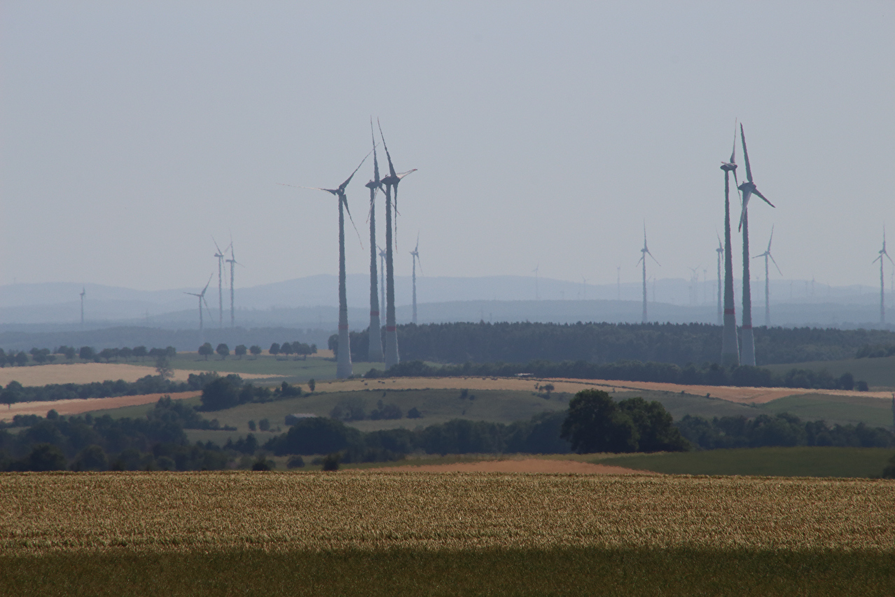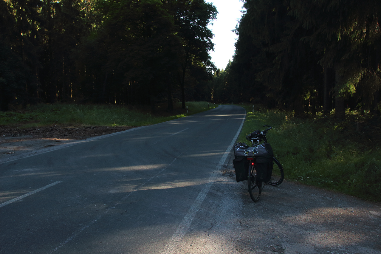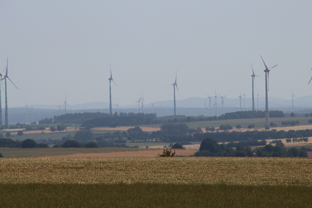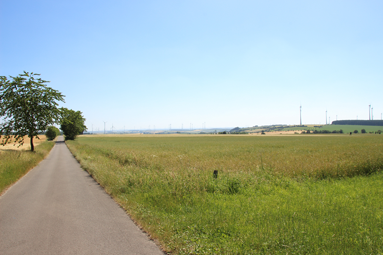Beschreibung | Das Eggegebirge (kurz: die Egge) war bei den Anfahrten zu früheren Sauerlandtouren immer mit dem Zug durchquert worden und dabei war auch immer mal der Gedanke aufgekommen, dort Fahrrad zu fahren. Wegen der beiden Hitzewellen war statt einer Viertagestour dieses Mal die Entscheidung für zwei Zweitagestouren genau zwischen den Hitzewellen gefallen. Nach der Harztour am Wochenende folgte die erste dreitägige Hitzewelle. Diese zweite Zweitagestour führte nun in die Egge und angrenzende Gebiete und nutzte genau die beiden Tage bis zur nächsten Hitzewelle. Warm war es wegen des wolkenlosen Himmels trotzdem. Die Tour führte notwendigerweise zu Beginn durch die landschaftlich wenig attraktive Steinheimer Börde, da es zwischen Steinheim und Altenbeken keinen S-Bahn-Halt gibt und Überquerung des Eggehauptkamms von Langeland nach Altenbeken nicht ausgelassen werden sollte. Dieser erste Anstieg dieser Etappe war auch der längste. Da der Eggehauptkamm keine tiefen Einkerbungen in seinem Verlauf aufweist, steigen die Passstraßen über die Egge notwendigerweise sehr weit auf, wobei hier " sehr weit" in Relation zur Höhe der Egge und der umliegenden Mittelgebirge zu sehen ist. Die Passhöhe der L755 zwischen Langeland und Altenbeken liegt auf 376 m ü.NHN, der höchste Berg in der Egge ist gerade mal 464 m ü.NHN hoch. In der Westrampe der Passtraße liegen an mehreren Stellen Bremsschwellen quer über die gesamte Fahrbahn. Was der Verkehrsberuhigung dienen soll, stellt tatsächlich eine Gefahr für Zweiradfahrer dar! Von der Passhöhe kommend warnt lediglich ein Schild vor "Fahrbahnunebenheiten". Auch mit einer zur Sturzvermeidung reduzierten Geschwindigkeit sind diese Bremsschwellen oft erst sehr spät zu erkennen. Einen Materialschaden am Fahrrad können diese Bremsschwellen aufgrund ihrer Geometrie schon bei recht niedriger Geschwindigkeit verursachen. Eine Umfahrung ist mit dem Fahrrad selbst mit niedriger Geschwindigkeit nicht möglich, da diese Bremsschwellen sich über die gesamte Fahrbahn erstrecken. Ab Altenbeken, wo Mittag gegessen wurde, verlief diese Etappe mit Generalkurs Süd. Sie bot zwar keine langen Anstiege mehr, die Höhenmeter bergauf läpperten sich vielmehr durch das wellige Streckenprofil zusammen. Der Anstieg von Schwaney nach Herbram enthielt die steilste Rampe dieser Etappe mit bis zu 12 % Steigung. Nördlich oberhalb von Herbram erschienen zum ersten Mal die Berge des Sauerlandes am Südhorizont, davor allerdings zahlreiche Windkraftanlagen der beiden Windparks Asseln und Sintfeld. Die Fahrt führte dann auch durch den Windpark Asseln. Schön anzusehen sind diese Windspargel sicherlich nicht, aber zum einen ist die Paderborner Hochfläche im wesentlichen mit Feldern bestellt, also optisch wenig attraktiv, und zum anderen geht es ohne Windkraft hierzulande nicht, wenn der Strom nicht aus Kohle- und Kernkraftwerken kommen soll, denn "aus der Steckdose" kommt der Strom nun mal nicht. Der letzte, recht unscheinbare Sattelpunkt der Tour bildete auch das "Dach der Tour" kurz vor dem Etappenziel Essentho. |